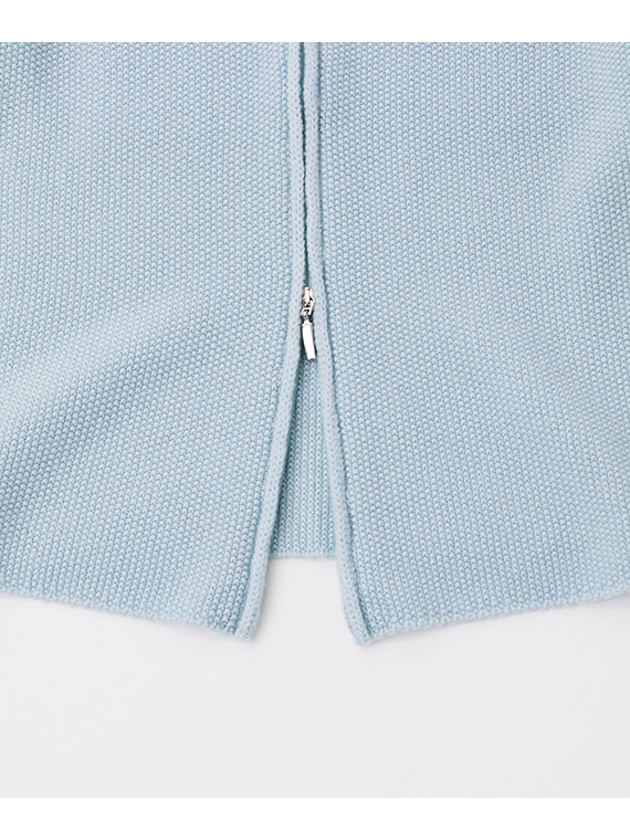 上質なウール100%素材を使用し、柔らかく暖かみのある着心地が魅力です。タートルネック仕様で首元までしっかりカバーし、寒い季節も快適に過ごせます。ジップアップデザインは着こなしの幅が広く、軽アウターとしてもインナーとしても活躍します。