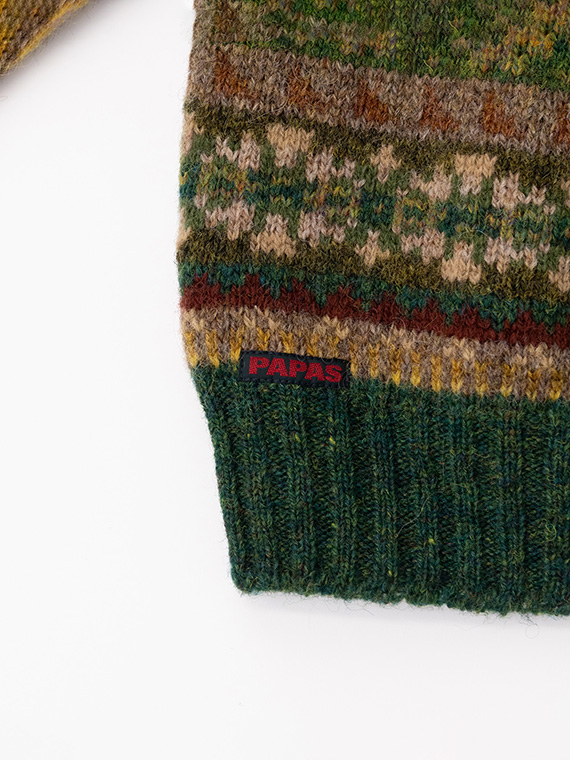 JAMIESON’Sは、スコットランド・シェットランド島で5世代も続いている伝統的なフェアアイルニットです。180もの美しい色の糸と代々引き継がれてきたその柄で、世界中の人々を魅了しています。どんなに真似ようと思っても決して真似の出来ないフェアアイル、それがこのJAMIESON’Sのニットです。素朴に、真面目に、ずっと同じものを作り続けてきたノウハウに長い歴史を感じることができます。