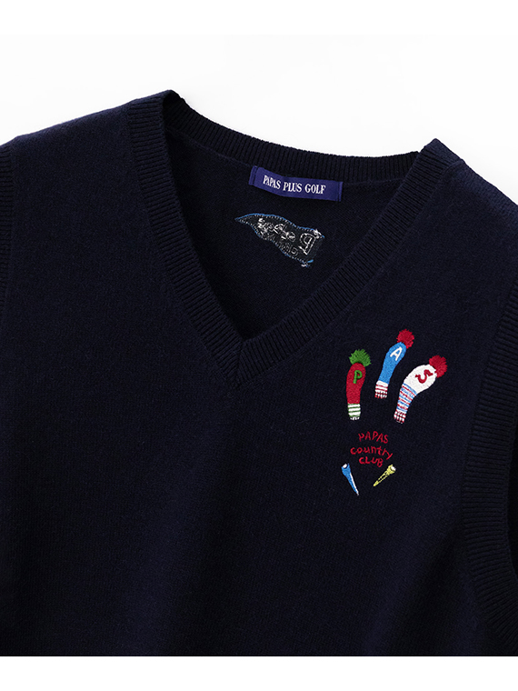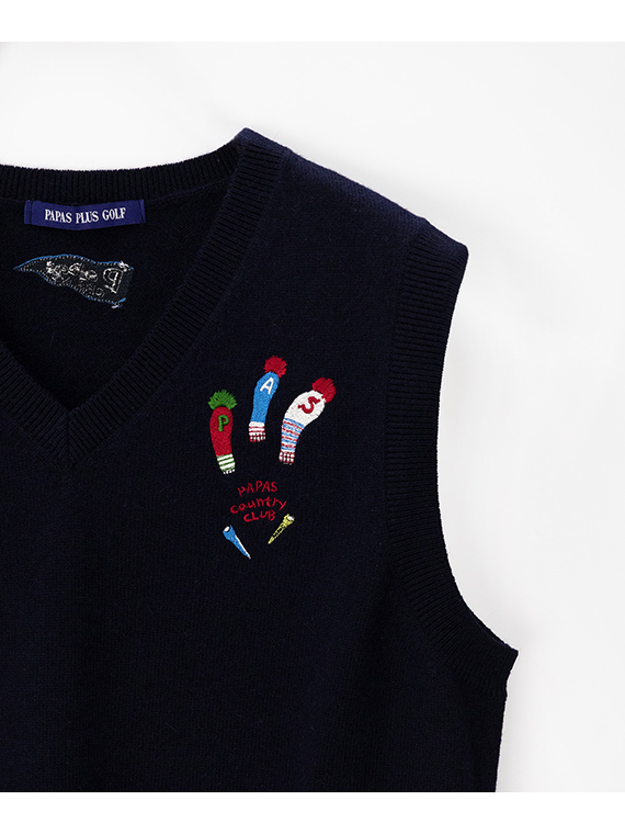 【レディース】ウール天竺飛び柄刺繍入りニットベスト