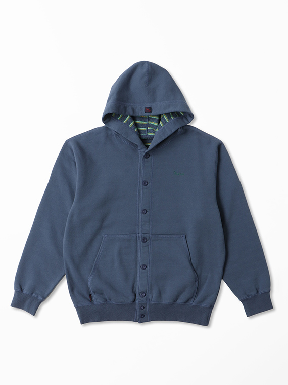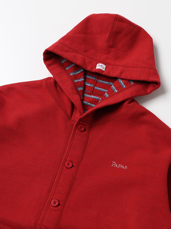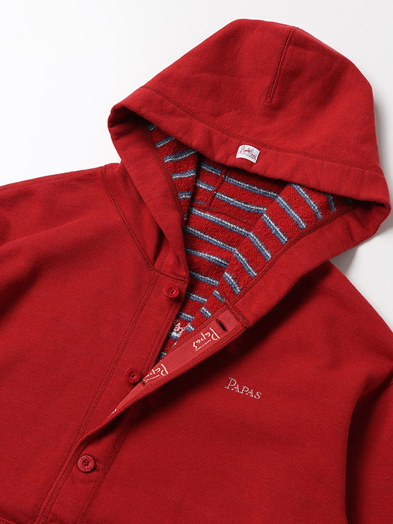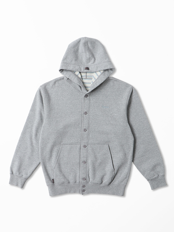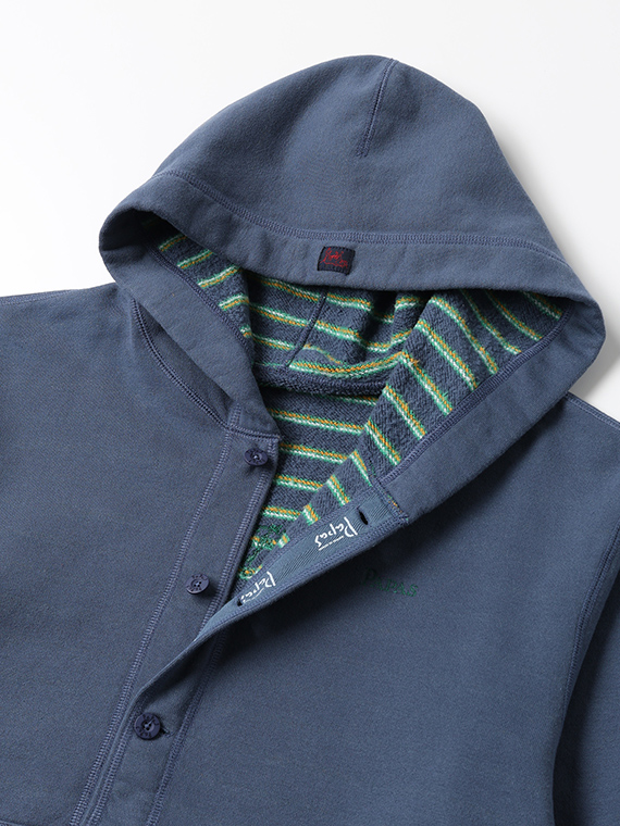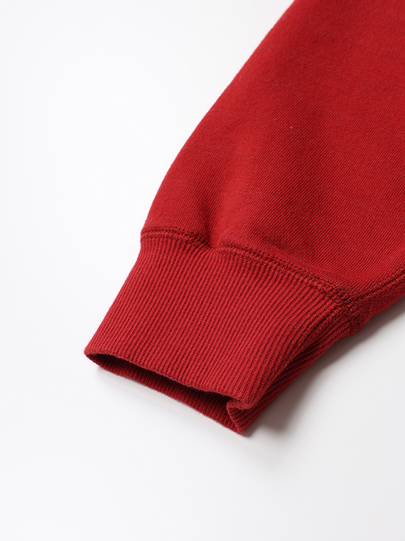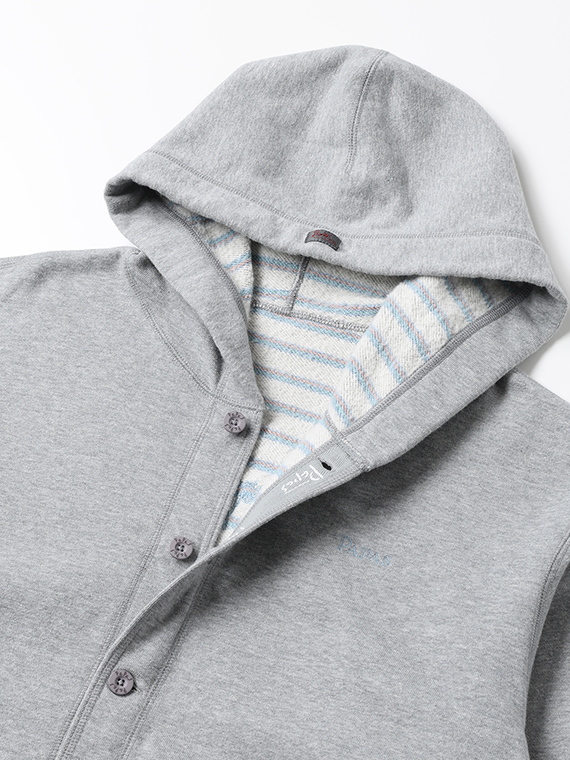 生地は、オリジナルピッチの裏ループの2色ボーダーを組んだ裏毛です。裏糸に双糸を使用することで高級感と温かみのある素材に。風合いにもこだわり、仕上げにタンブラー加工を施しふっくらと仕上げています。