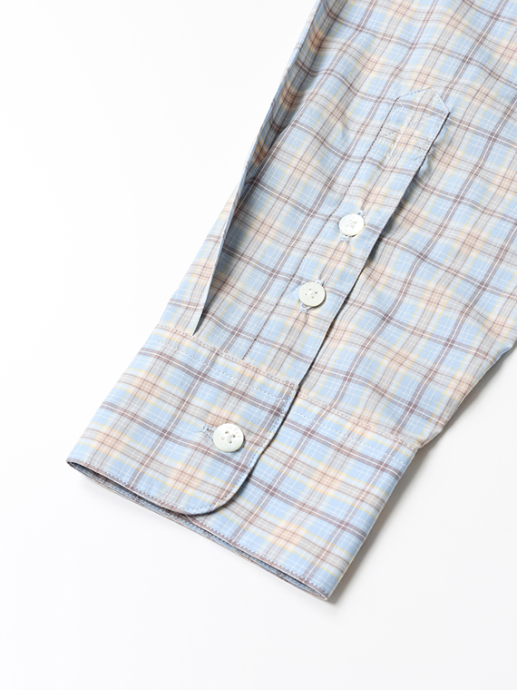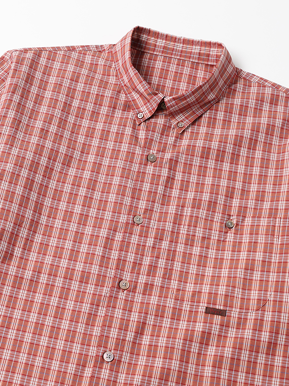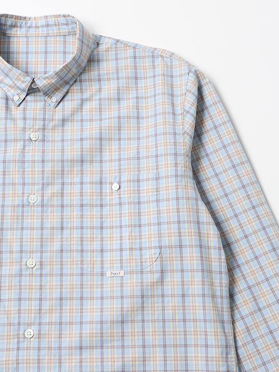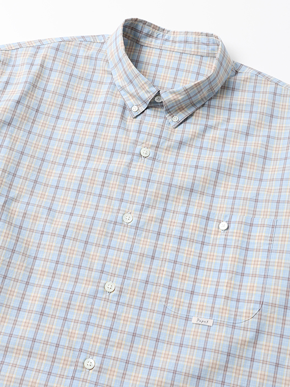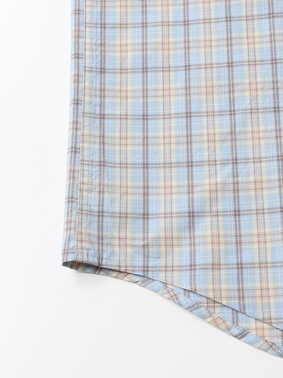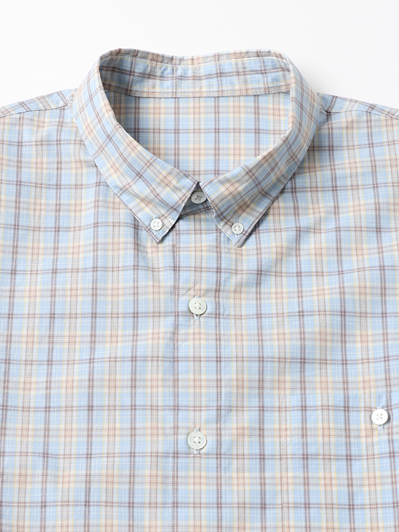 生地は、経糸・緯糸ともに良質なコンパクトコットンの60/1を使用しています。洗濯後の毛羽立ち等が起きづらく柔らかみのある質感で、着心地の良い一枚に仕上がっています。