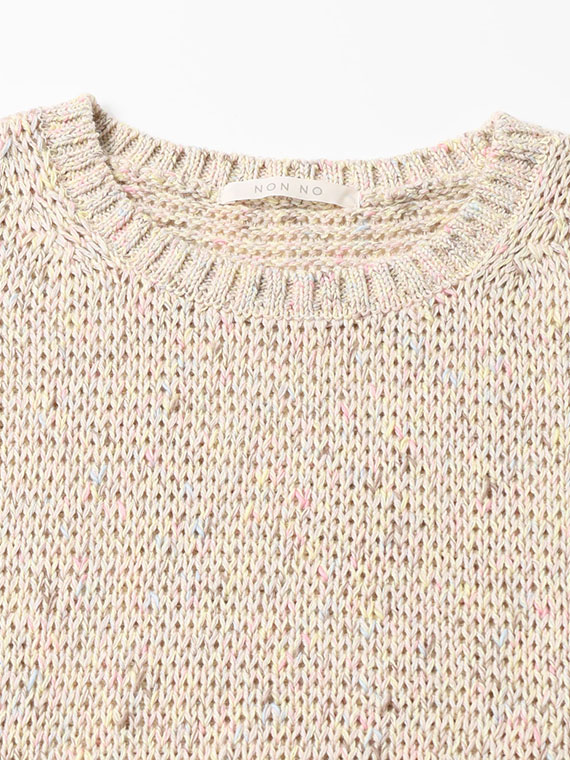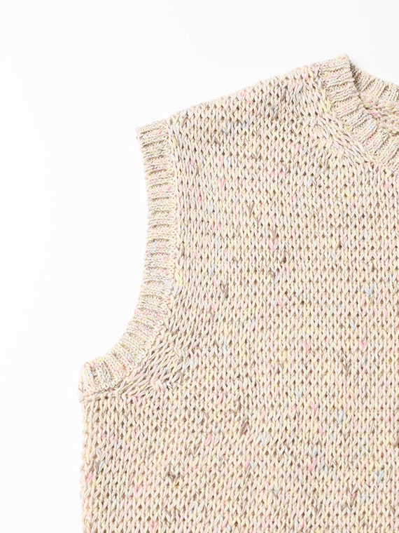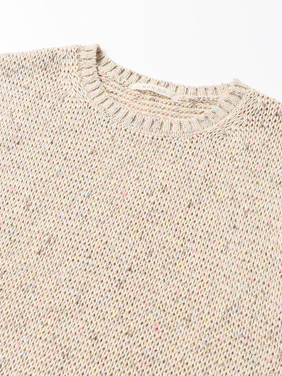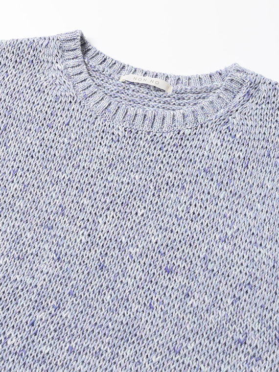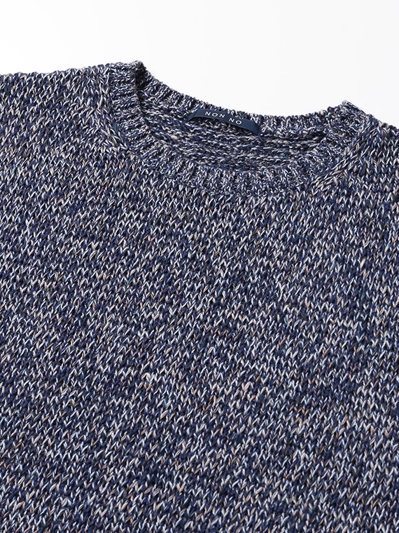 太めのざっくりとしたコットンは重くなりがちですが、無撚糸をベースにすることで驚くほど軽やかで柔らかい仕上がりに。鮮やかに混ざり合うミックスカラーとネップの表情は存在感がありながら、ハリコシと軽さを両立し、綿100%とは思えない快適な着心地を実現しています。
