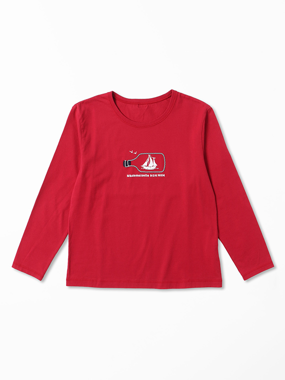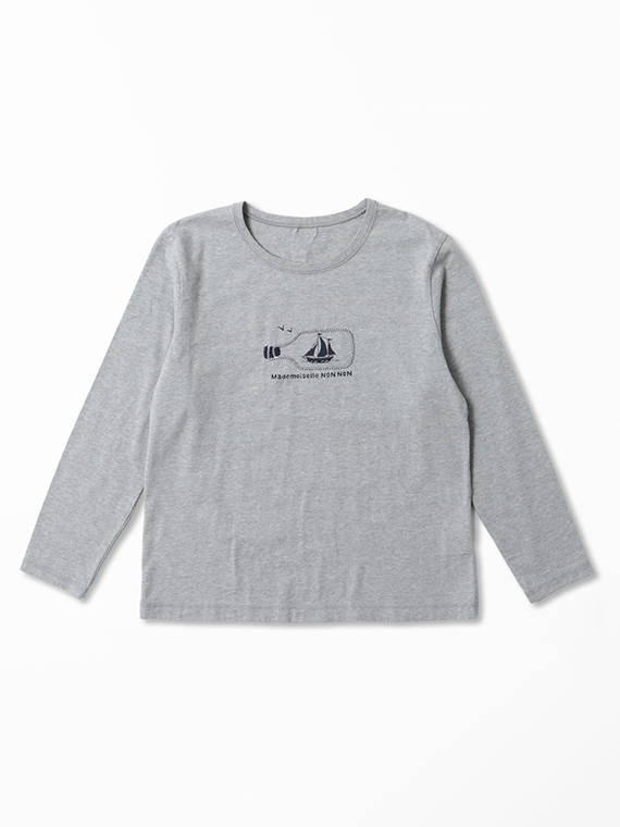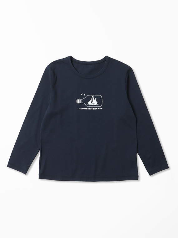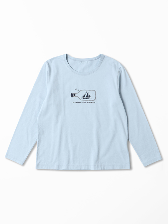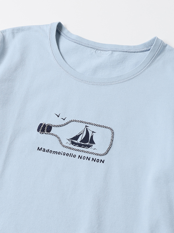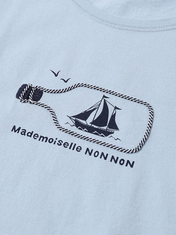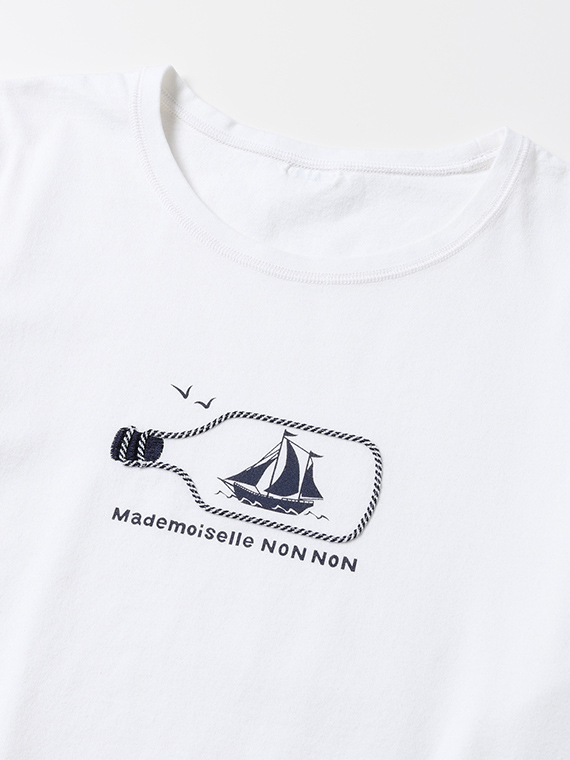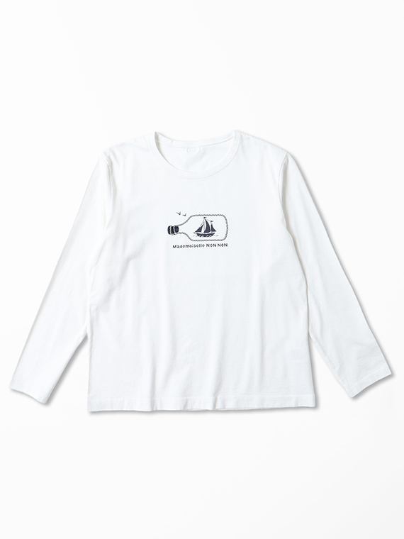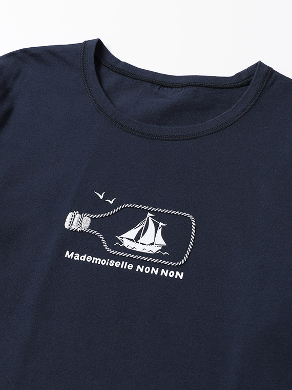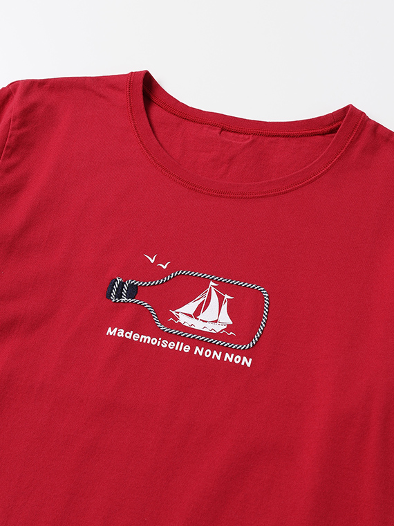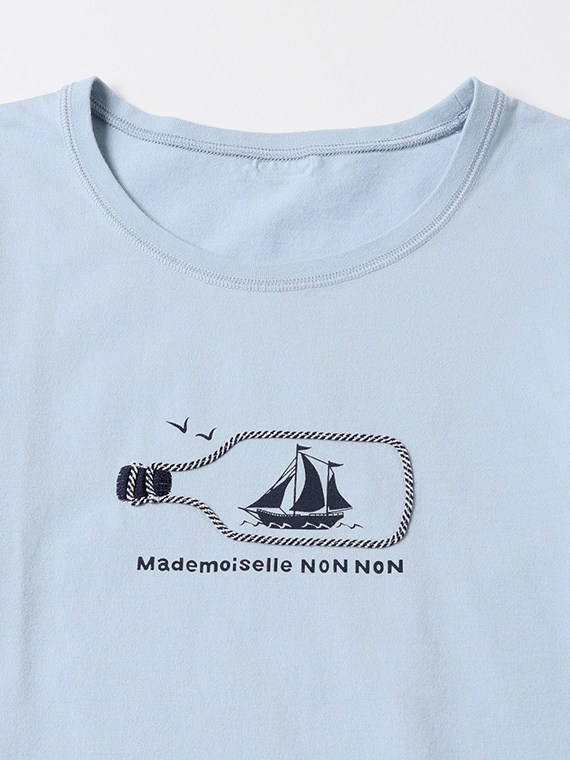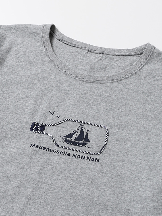 ※前身頃胸中央1色プリント+1色刺繍+2色ロープ刺繍 (bottle ship)