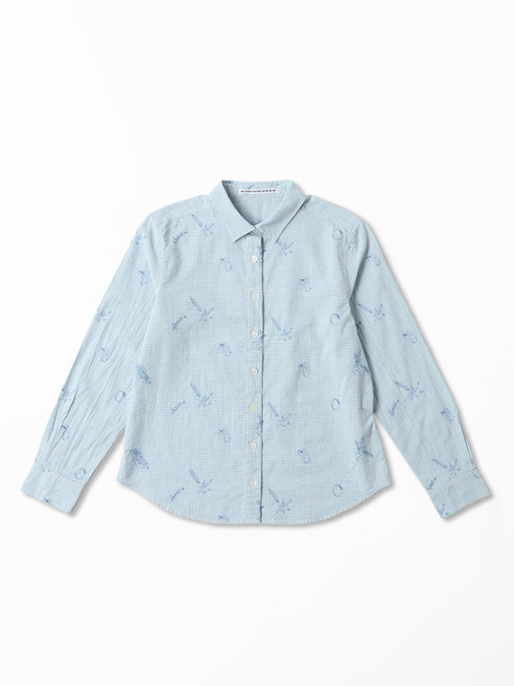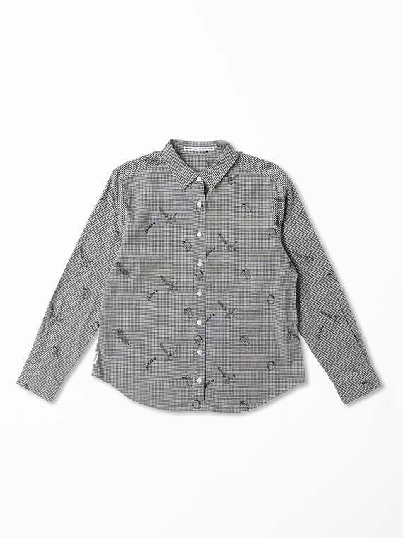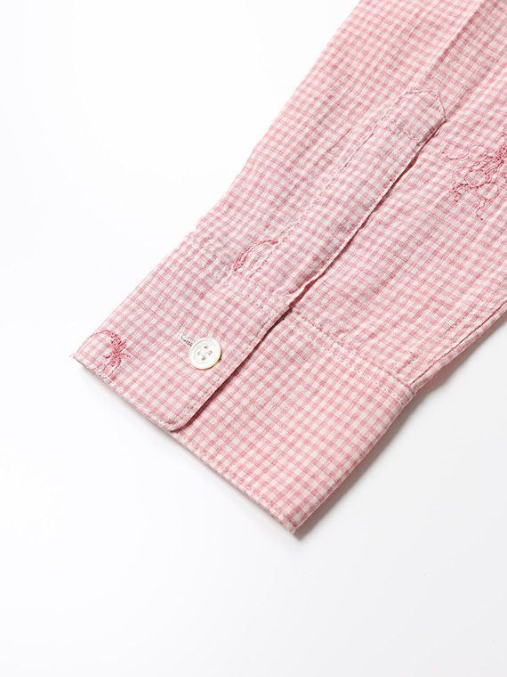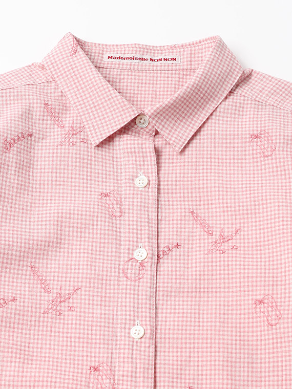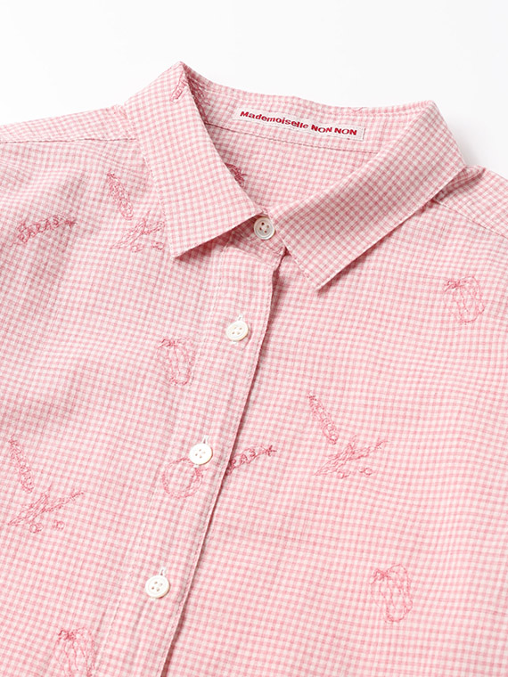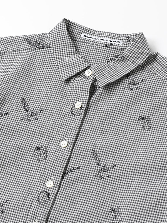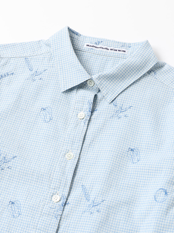 新鮮なベジタブルモチーフの刺繍をのせて、シンプルなチェック柄生地に表情と軽やかなユーモアをプラスしました。ニットやアウターとのレイヤードはもちろん、一枚で着ても存在感のある主役級シャツです。