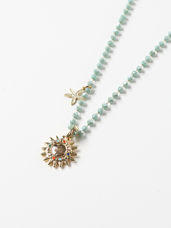 画像2枚目のように別売りのカラーストーン付きチェーンネックレスやウォームカラーネックレスと組み合わせて、お召しいただくと素敵です。