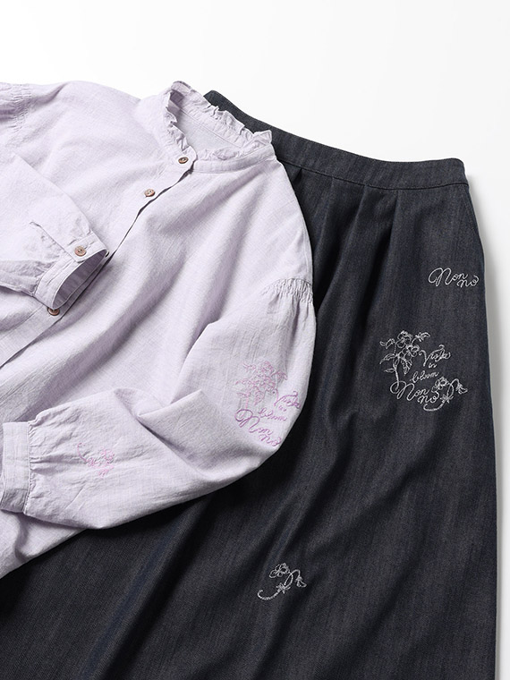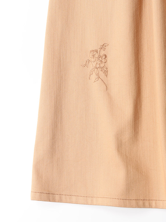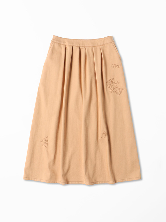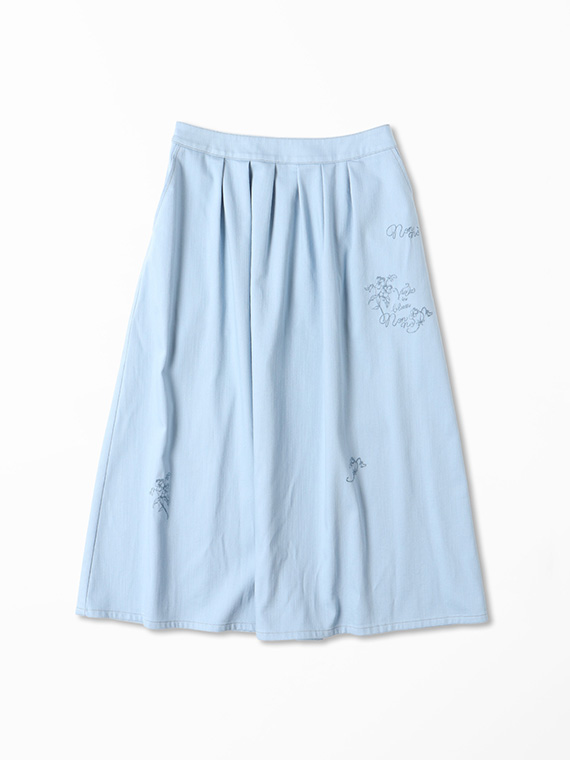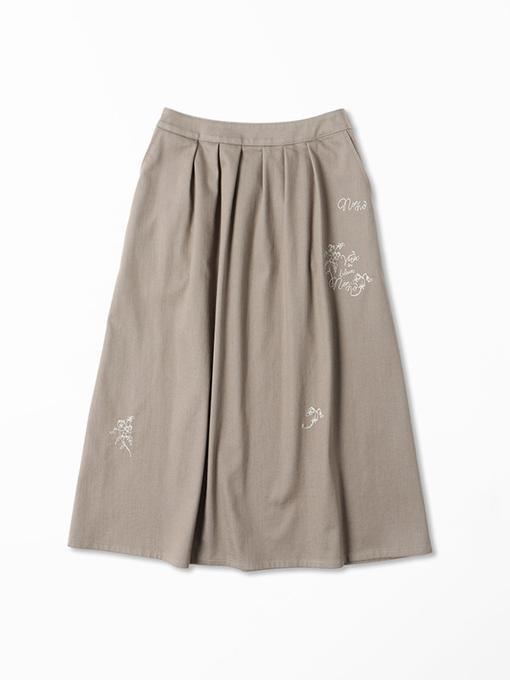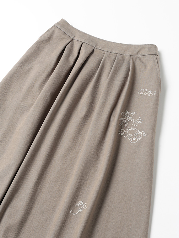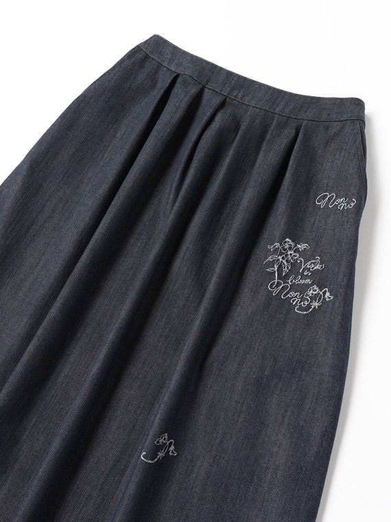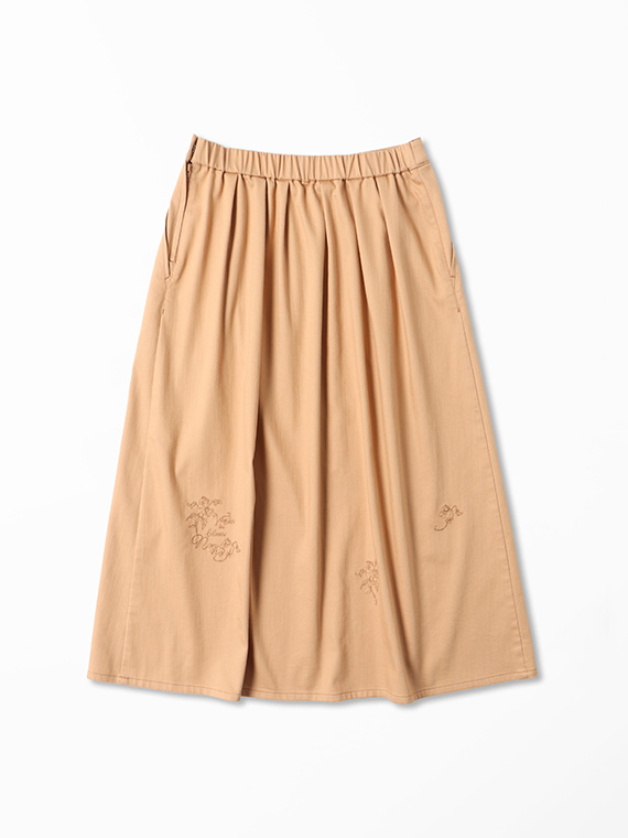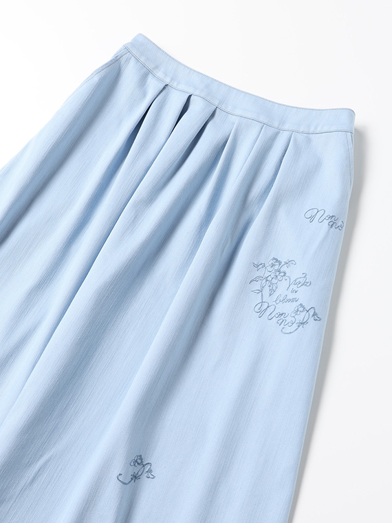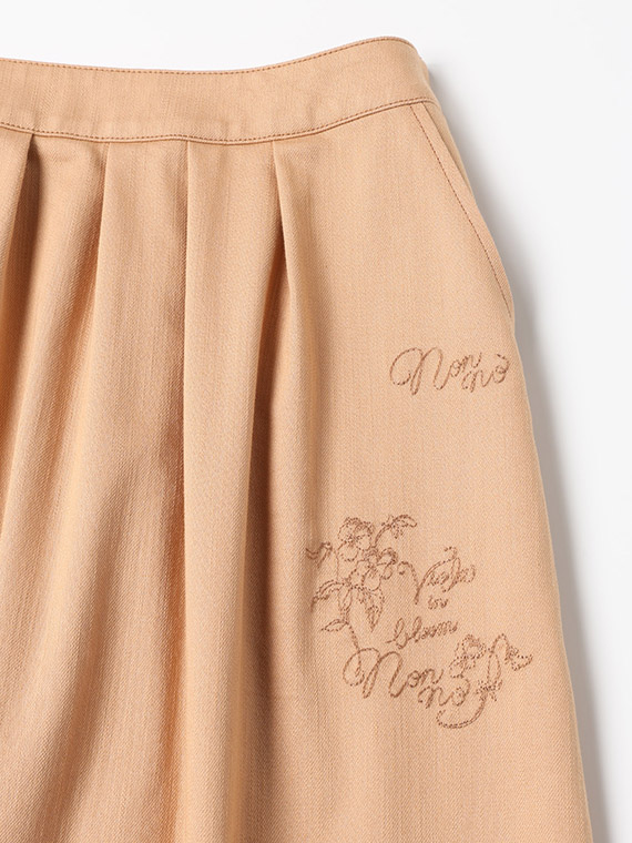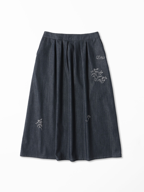 デニムライクストレッチクロス ビオラ刺繍入りタックスカート