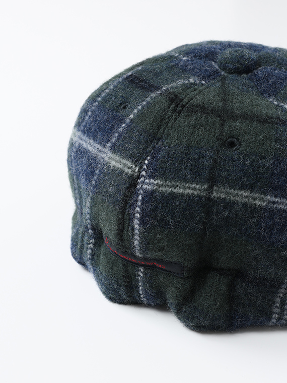 この原料を使用して、SPL(縦糸挿入機)でチェック柄をインターシャで編み立てています。縮絨加工を施すことで、柔らかな肌触りとふっくらとした風合いがうまれ、生地の歪みを軽減し、強度も高めています。SPL(縦糸挿入機)とは、横網機に60本の縦糸を挿入することができる稀少な編み機です。縦糸を挿入して、織物のように美しく綺麗なチェック柄を安定した編み地で編むことが出来ます。
