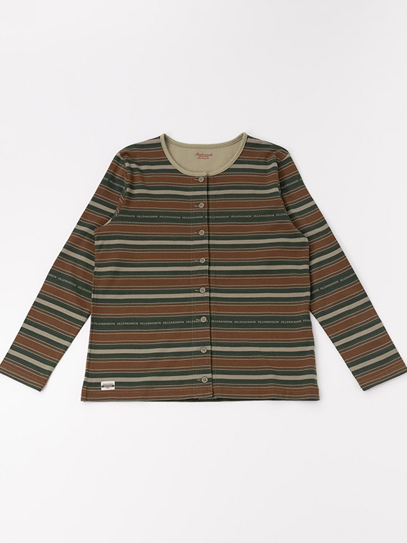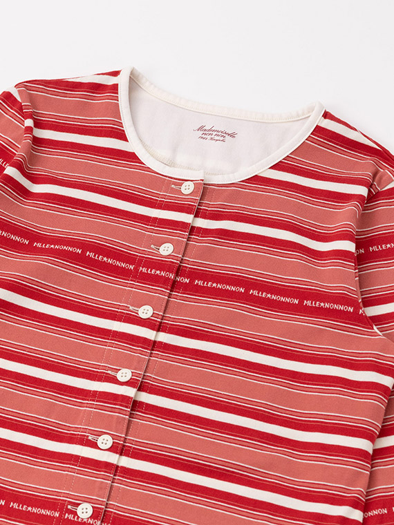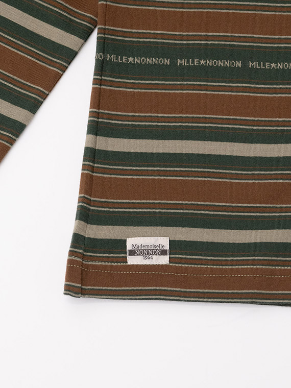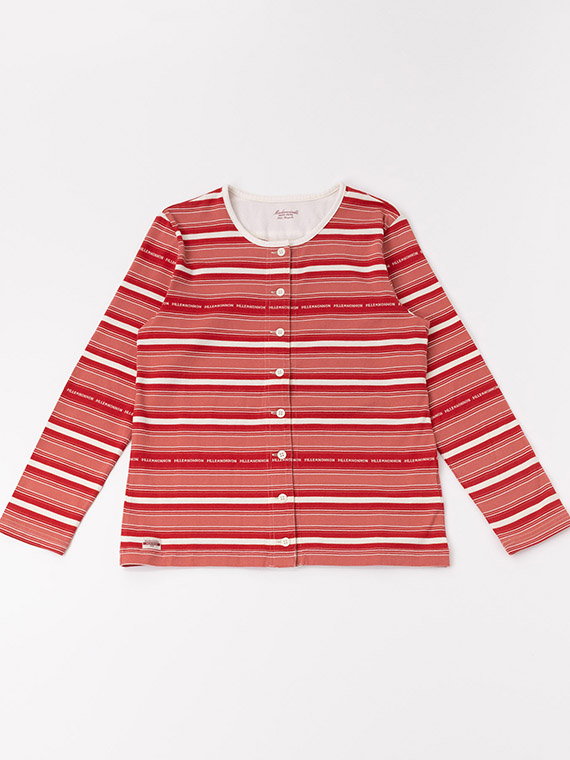 当時の製品を参考にしてボーダーピッチ・配色・ロゴを表現して編み上げています。
