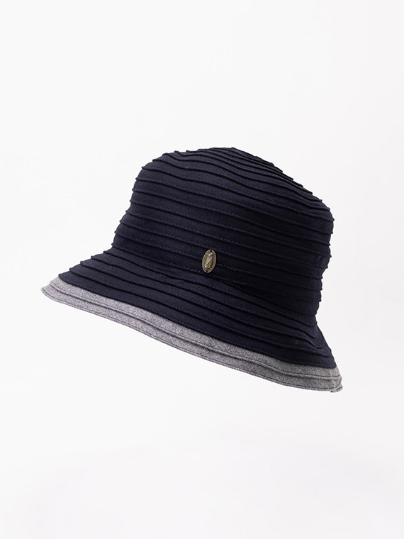 つば端には同素材の配色ラインを2段あしらい、さりげないアクセントをプラス。シンプルながらもコーディネートを引き締めるデザインに仕上げました。きれいめスタイルにもカジュアルにも合わせやすく、デイリーからお出かけまで幅広く活躍するアイテムです。
