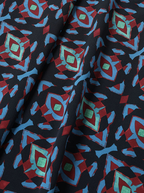 ベースの生地は薄手でソフトな風合いが魅力のデシン生地で、タテ糸に撚りのない糸を、ヨコ糸に強撚糸を使用して織りあげたものを用いています。