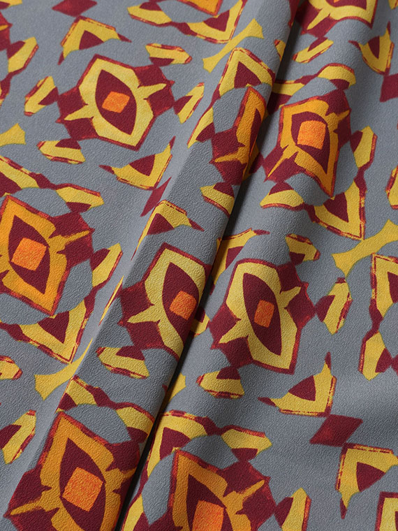 ベースの生地は薄手でソフトな風合いが魅力のデシン生地で、タテ糸に撚りのない糸を、ヨコ糸に強撚糸を使用して織りあげたものを用いています。