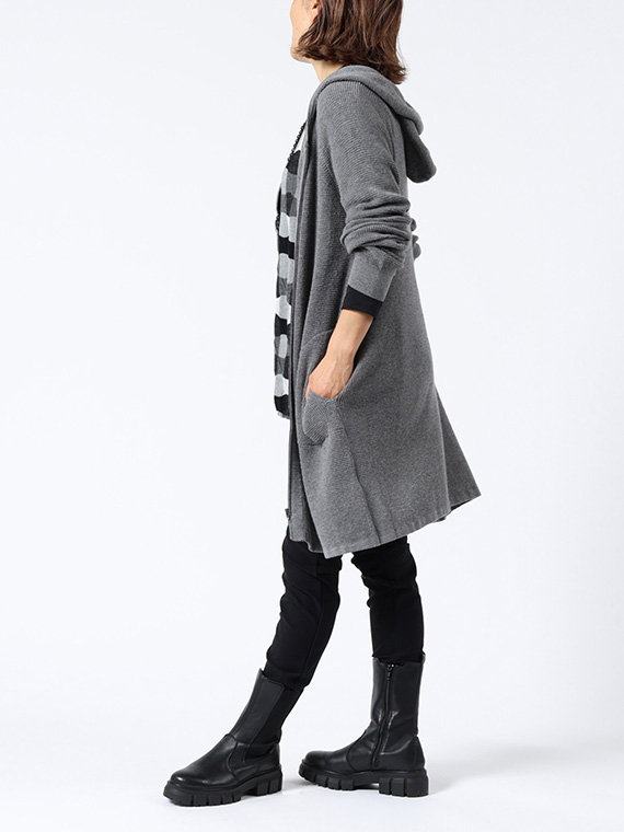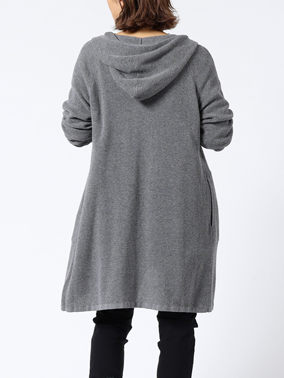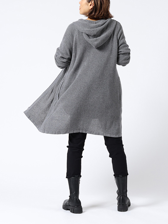 ファスナー開きでさっと羽織れ、前身頃左右にはポケットも付いているので、ちょっとしたお出かけにも便利です。