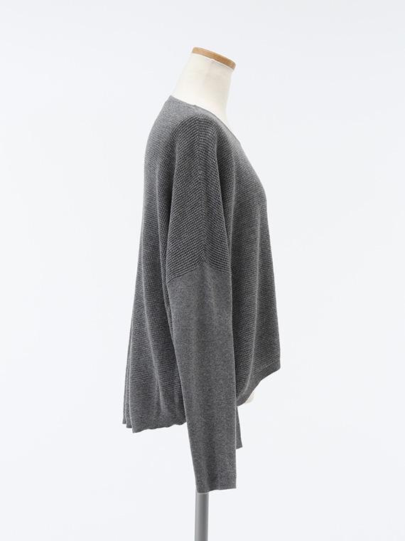 ただ大きいだけでなく、袖の部分はストレッチの効いたリブ編みで、もたつかず、動きやすく仕上げました。