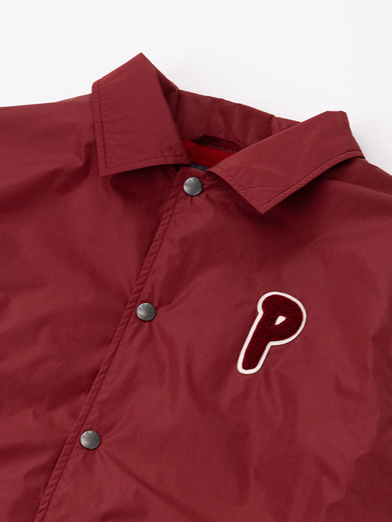 生地は、タテ・ヨコ糸ともにTEIJIN社のソロテックスを使用し、高密度に織り上げたポリエステルタフタです。ソロテックス特有のしっとり感のある風合いや、ハイマルチ糸による形態安定性が特徴となっており、更にクッション性にも優れている為軽撥水・裏面のシレー加工を施しても、ソフトなままの風合いはソロテックスの性質が十分に活かされたアウターに最適な素材です。