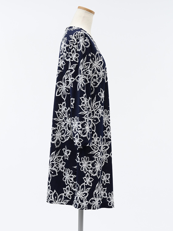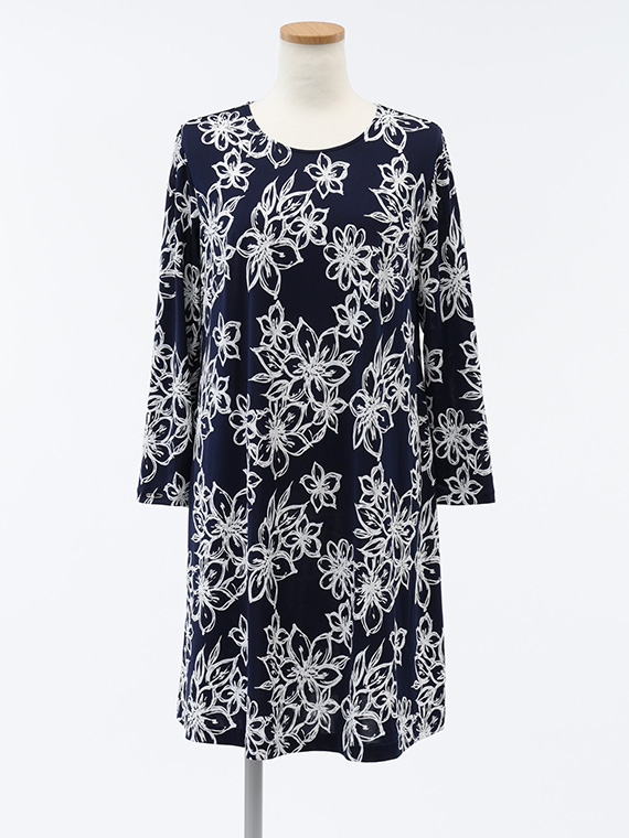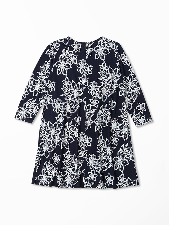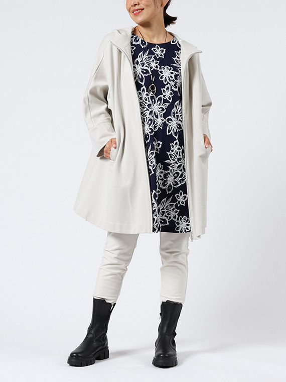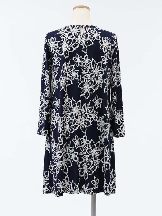 シンプルながらも優雅なAラインのシルエットが、気になる部分をさりげなくカバーしつつ、すらりとした印象を与えてくれます。