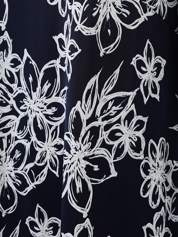 インクジェット&発泡プリントでフラワー柄を入れた生地です。