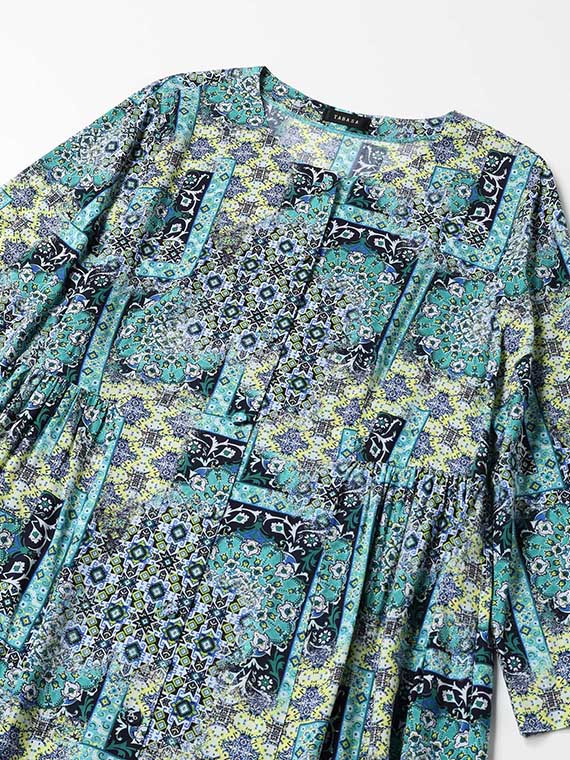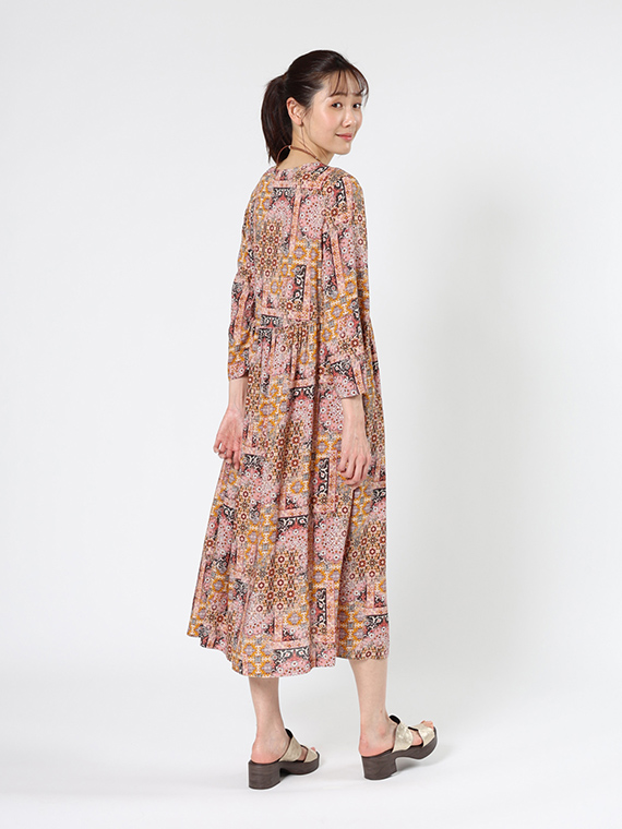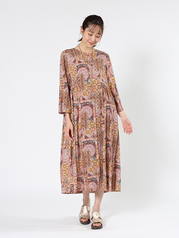 レーヨン ローン × アラベスク プリント ワンピース