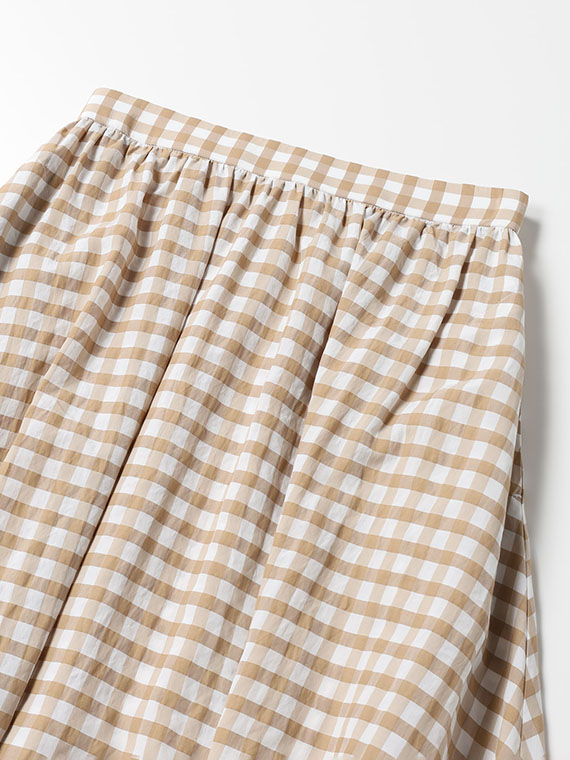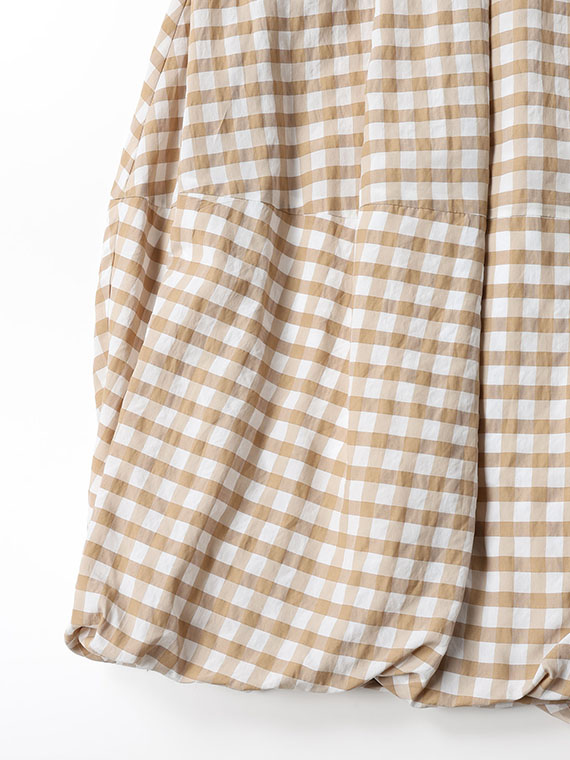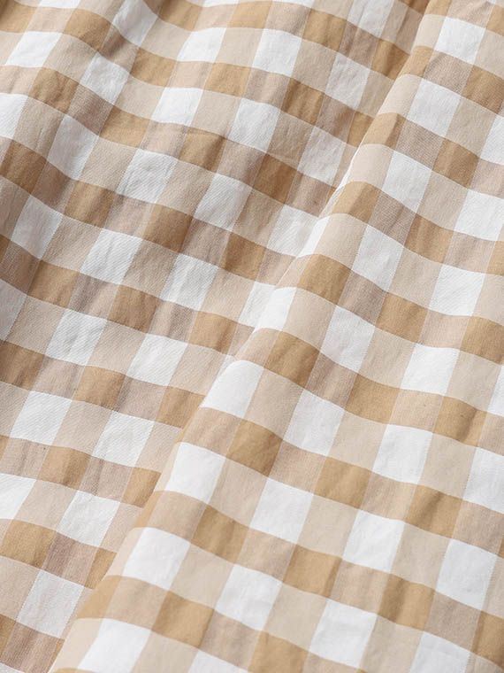 アセテート、レーヨン、コットンの3つの個性が響き合う特別なギンガムチェック生地です。