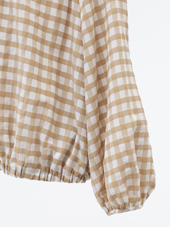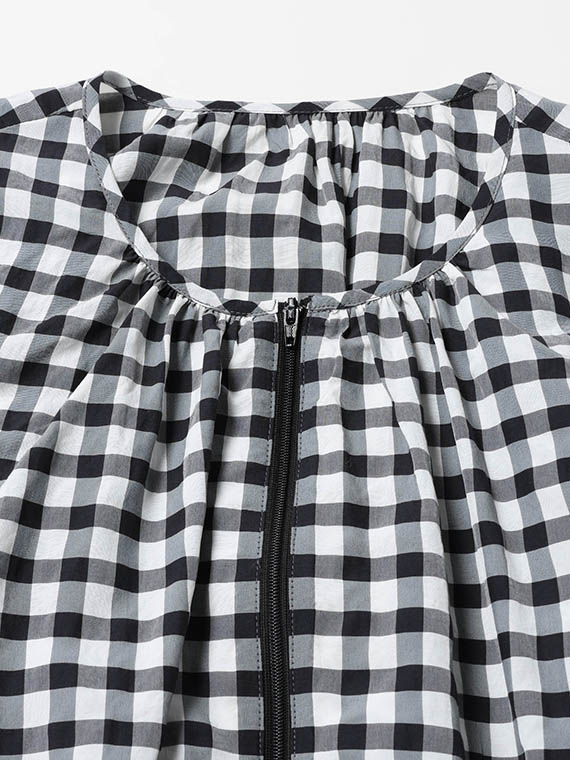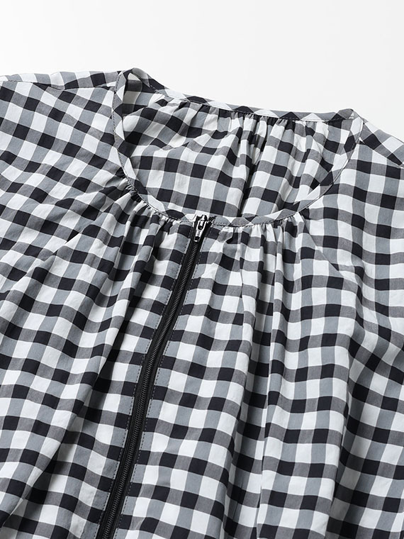 アセテート、レーヨン、コットンの3つの個性が響き合う特別なギンガムチェック生地です。
