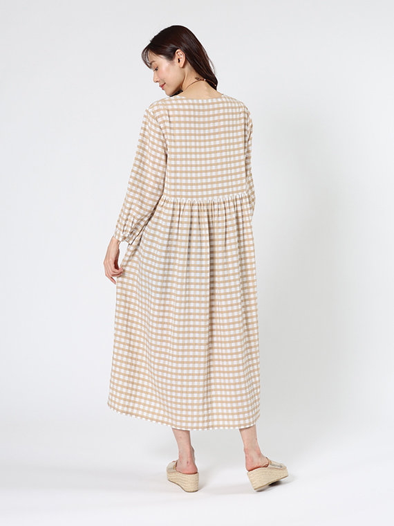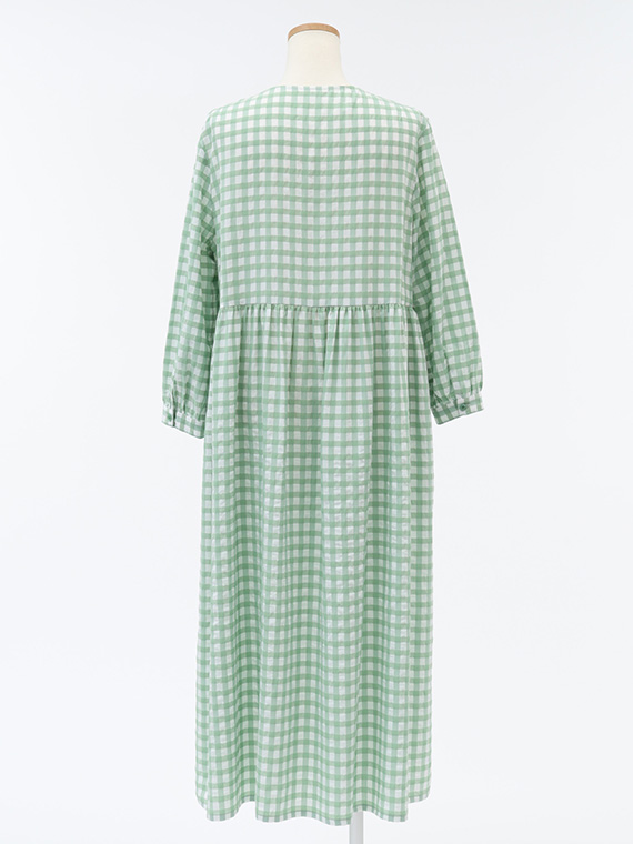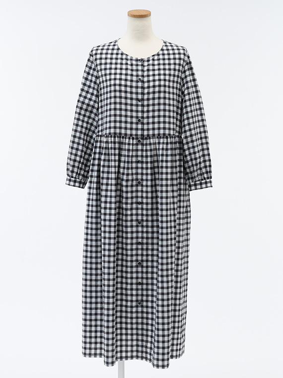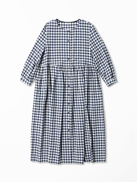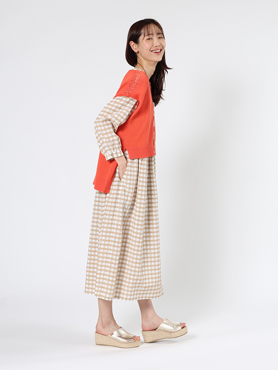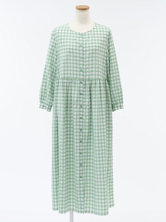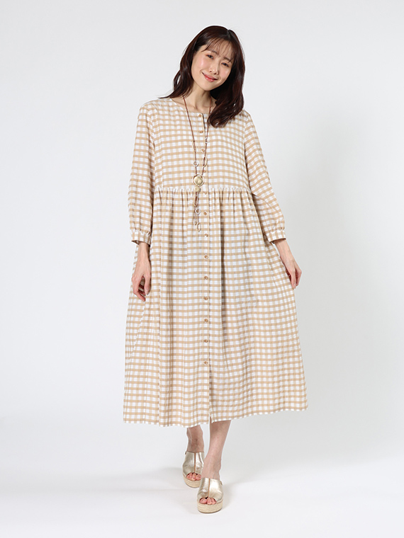 前開きタイプですので、ワンピースとしてはもちろん、軽やかなロングコートのように羽織るスタイルも素敵です。