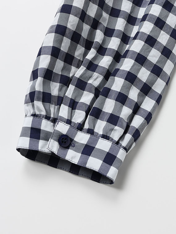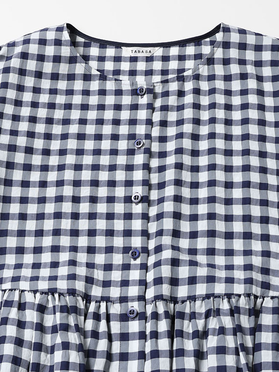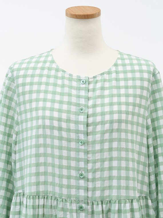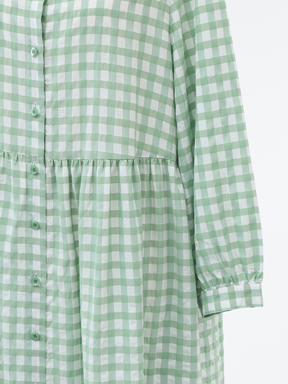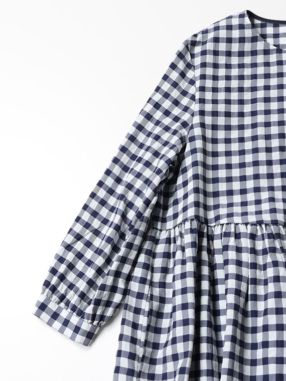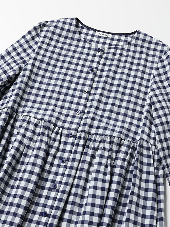 アセテート、レーヨン、コットンの3つの個性が響き合う特別なギンガムチェック生地です。