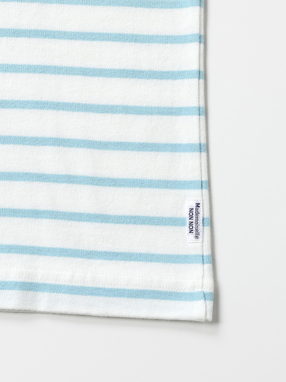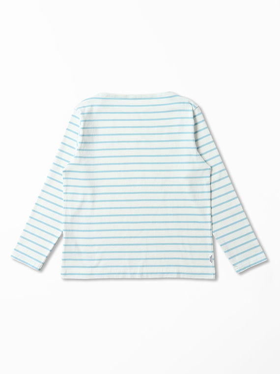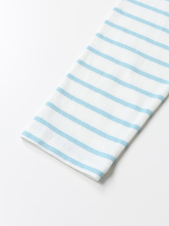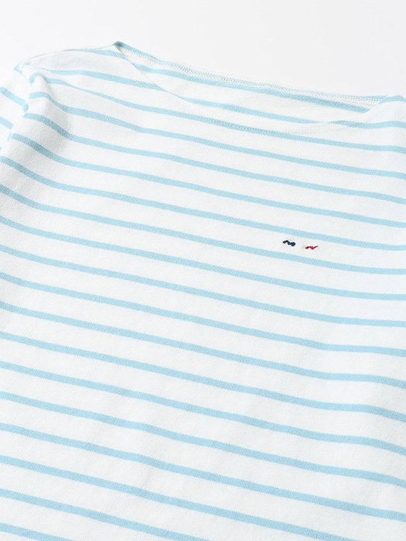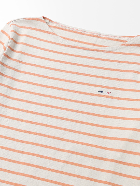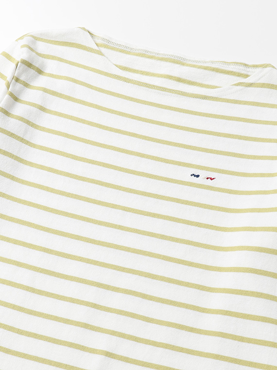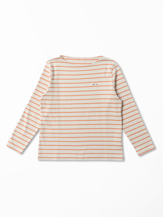 20/2カード糸を使用した2色ボーダーは、程よいカジュアル感がありながらも落ち着いた表情に仕上がっています。首元をきれいに見せるボートネックに、長袖デザインで季節の変わり目にも活躍します。