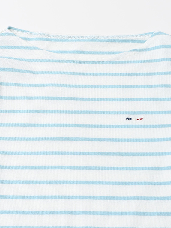 前身頃左胸には、3色使いの手差し風刺繍〈MNN〉を施し、さりげないアクセントをプラスしました。