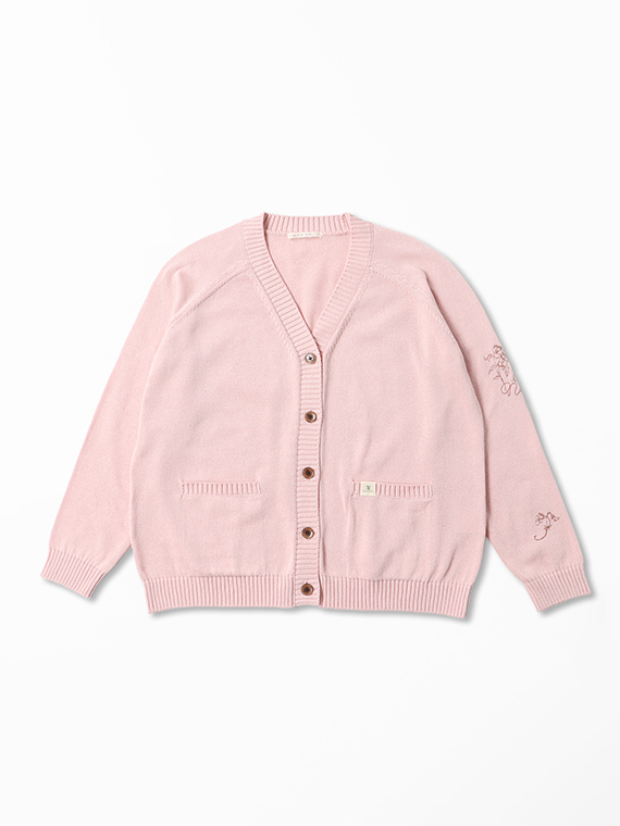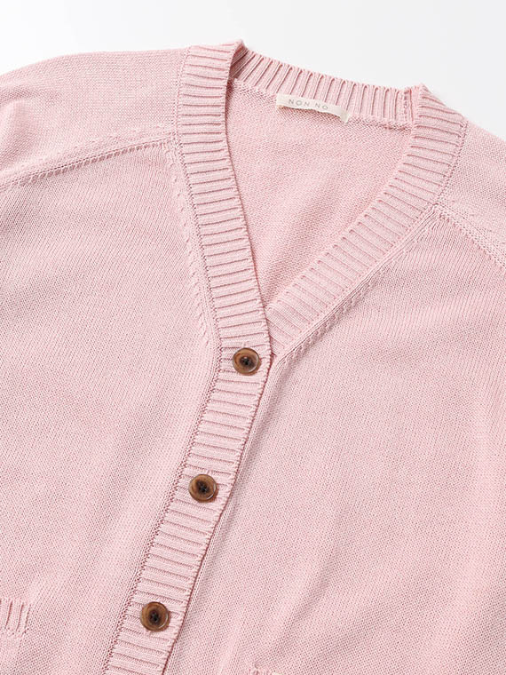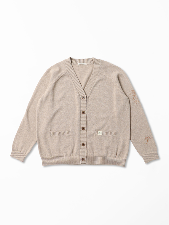 オーガニックコットン8G 刺繍入りVネックカーディガン