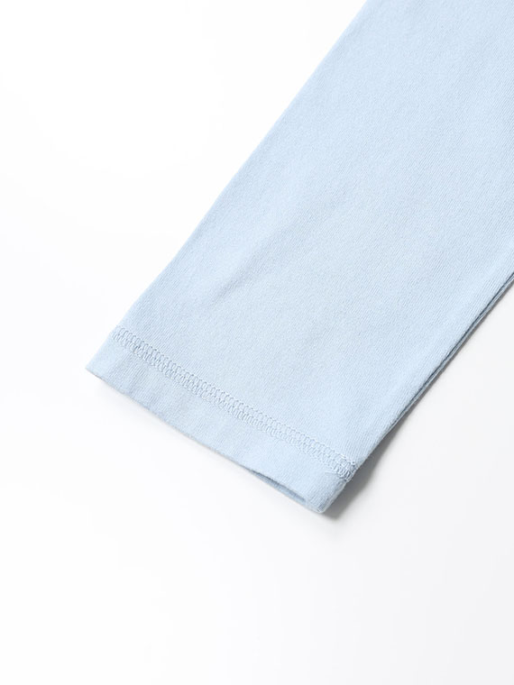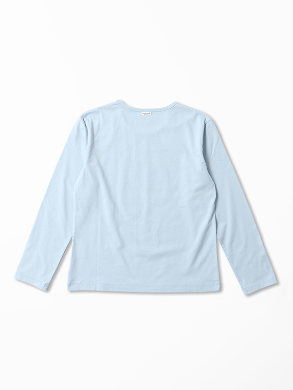 定番の40/2天竺にはコーマ糸を使用しています。糸はコーマ工程を通すことで、糸が滑らかで毛羽立ちの少ない糸になります。コーマ工程では、毛羽の素になる短い繊維を15%程取り除くので、糸はキレイで丈夫になるのです。そのコーマ糸を1本ではなく2本を撚って編むことで、更に毛羽立ちが少なく斜行しない生地になります。糸は左方向に撚りが掛けられているのが一般的です。一本の糸で編むと左に捩れようとしますが、2本を撚るときに反対の右方向に撚ることで、斜行せず安定した生地になります。定番なので、品質重視、毎年安定したクオリティでお届けしています。