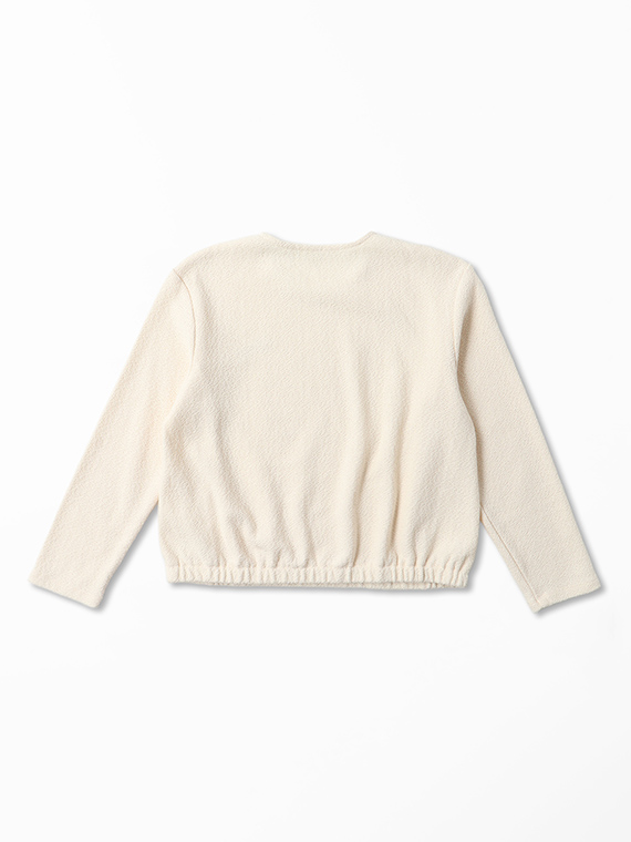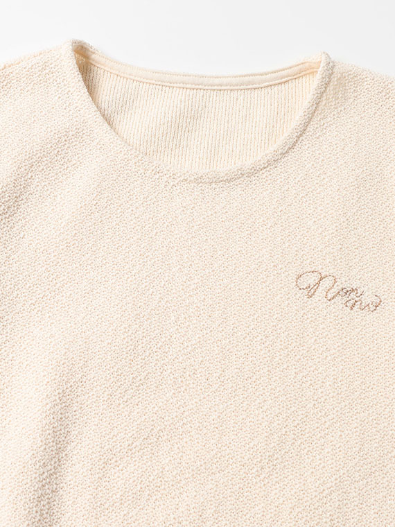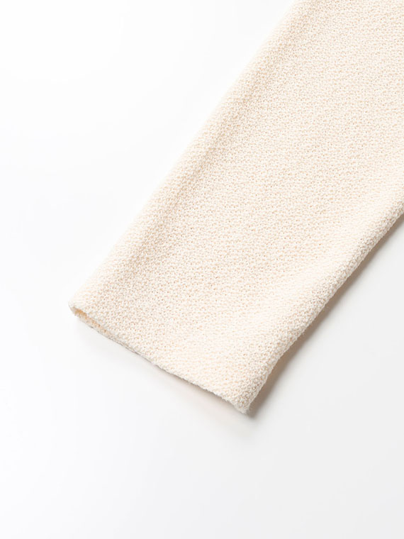 F010と合わせればオケージョンシーンにも対応可能。布帛ほど堅くならず、普段使いもしやすいのが魅力です。家庭洗濯ができる扱いやすさも嬉しいポイント。