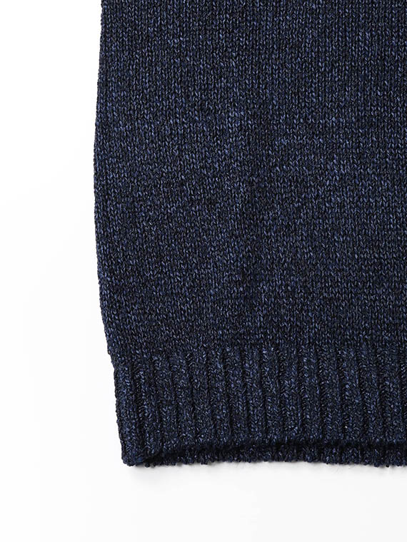 和紙&ポリエステルのブークレヤーンとレーヨン&アクリルのミックス糸、2種の糸を撚糸技術によって融合させた特徴的なファンシーヤーン。和紙特有の軽さ、湿気を吸いにくい性質からくる清涼感とマットでハリのある質感が特徴の糸と、レーヨン独特の光沢感とのしなやかさも併せ持った落ち感ある糸、2つの全く違う糸を撚糸したユニークな表情が特徴のオリジナル素材です。従来にはない軽さや春夏に嬉しいドライなタッチ、凹凸感に富んだ編地の見え感,ツヤとマット感の同居する高級感ある表情など、キレイ目ながらカジュアル感もある、合わせやすい素材です。01ベージュはミックスカラーで合わせやすい色目、02は光沢・質感の違う「紺」を集めて、個性的なネイビーに仕上げました。