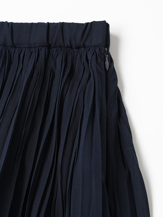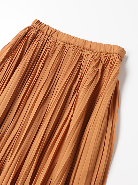 3丈分フレアーの手絞りプリーツで、動くたびに華やかに揺れる一枚です。軽やかでエアリーな印象ながら、きちんと感もあり、オケージョンから普段使いまで幅広く活躍。同素材を使用したバンドカラーリボン付きブラウスとのセットアップで、ワンピース見えスタイルもおすすめです。
