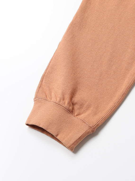 ヨーロッパの伝統的な農法で栽培された名門キャステリン社のベルギーリネン、その上質なリネンと厳選されたコットンをブレンドしています。最大の特徴は、特殊な紡績による、さらりとしたドライタッチな風合いと、リネンのもつ本来の清涼感とコットンの柔らかさの両立です。編み立ては、日本有数の和歌山産地にて裏の目立てを「1飛び裏毛」にすることで軽やかに仕上げました。現代日本の気候に合わせて、汗ばむ季節においても肌離れも良く爽やかな着心地を提供いたします。