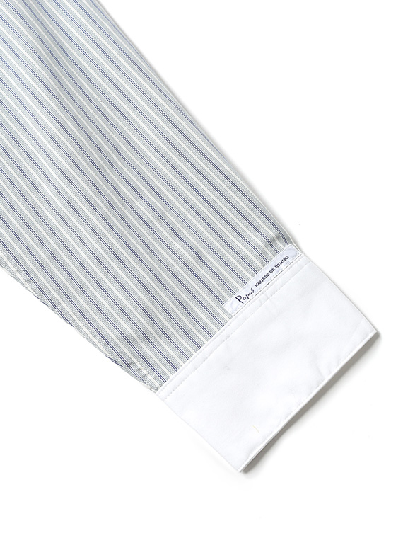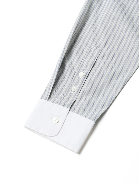 カラー01ブルー系ストライプのみ、ビンテージワークシャツをイメージしたアイボリーのグランドカラーを採用しています。
