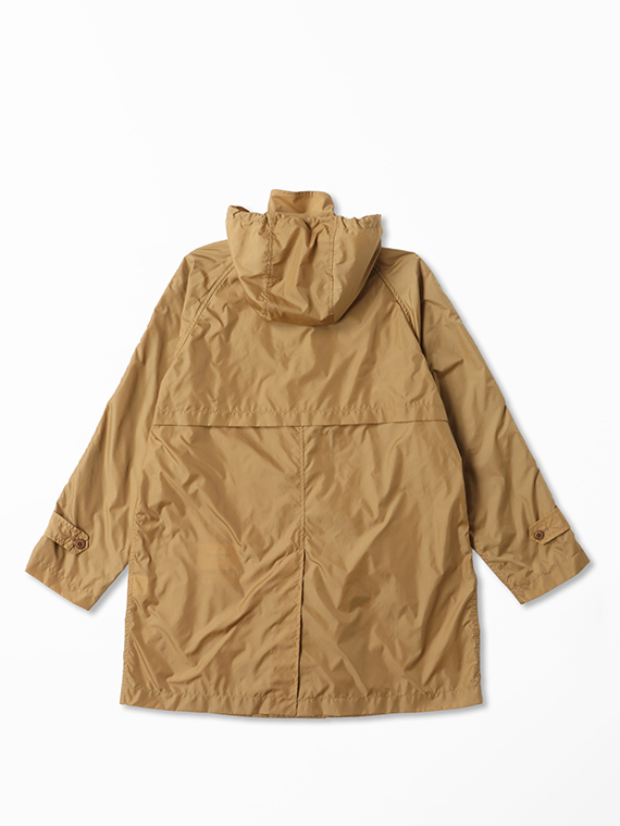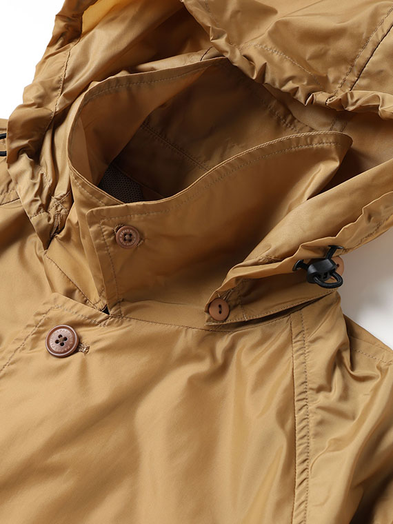 フードは着脱可能な仕様で、スタイリングや天候に応じたアレンジが可能。さらにパッカブル仕様のため、コンパクトに収納でき、持ち運びにも便利です。シンプルなデザインで、カジュアルからきれいめまで幅広いコーディネートに対応する、実用性の高い一着です。