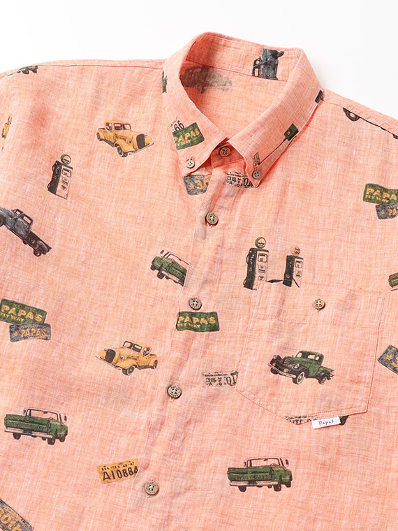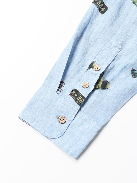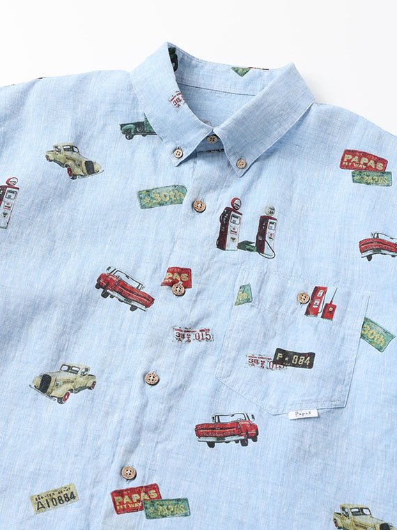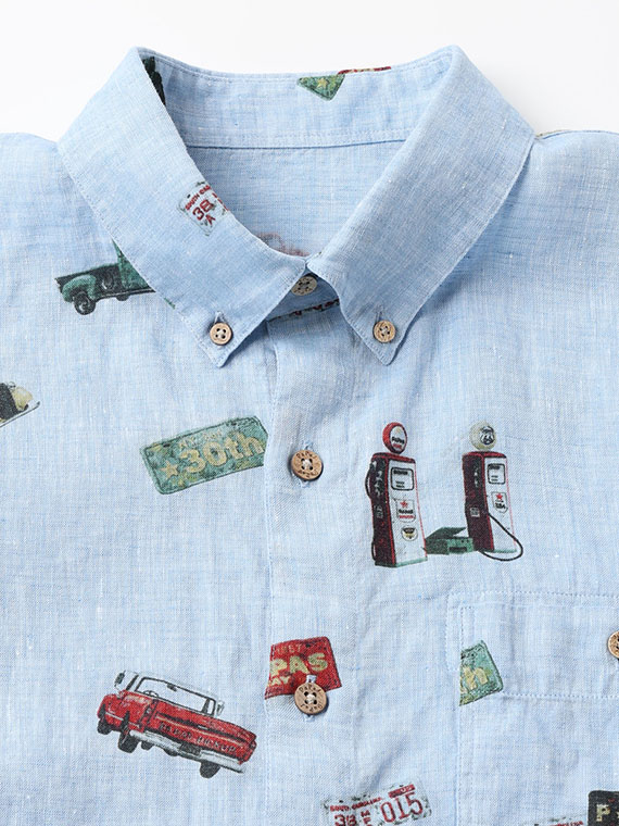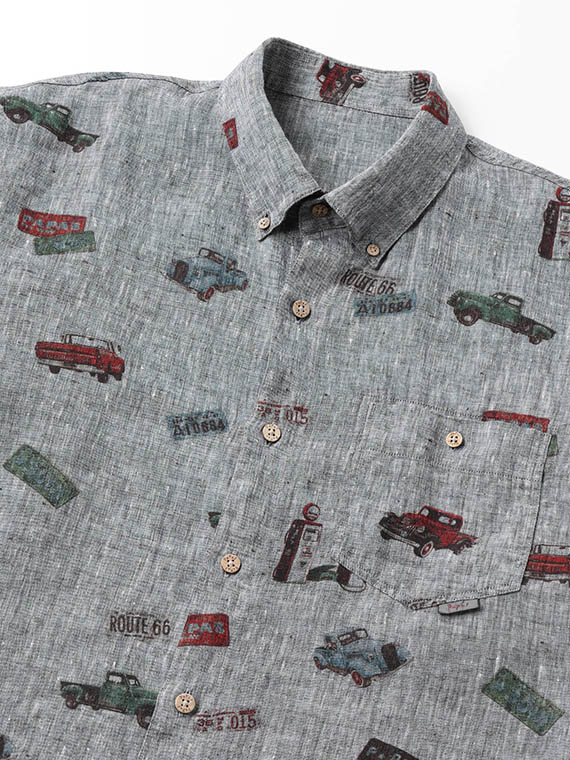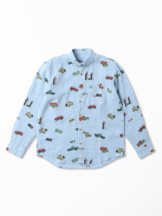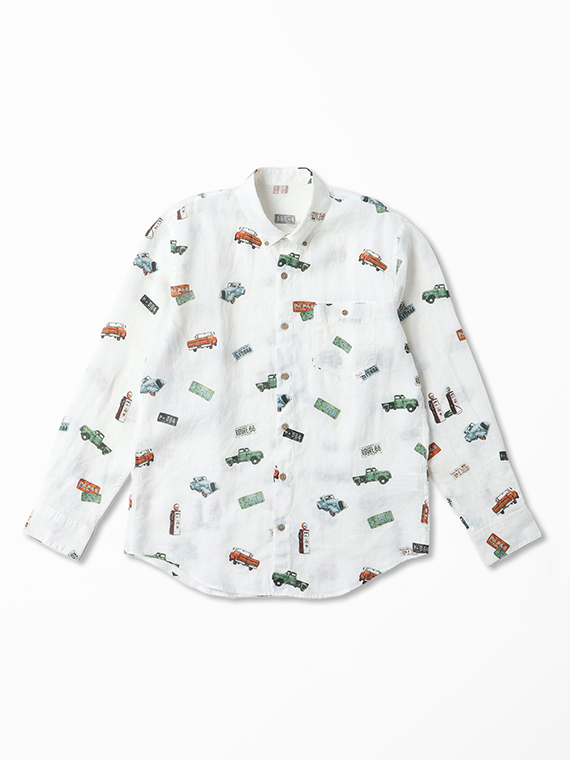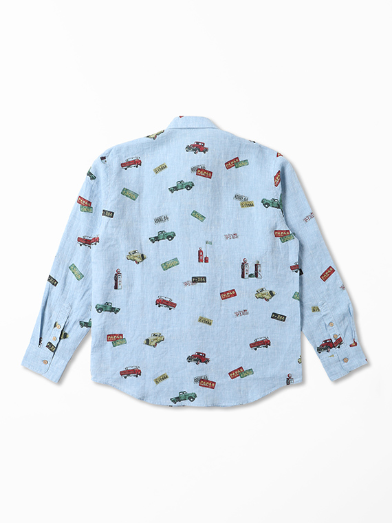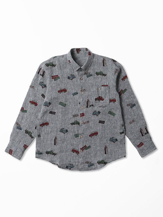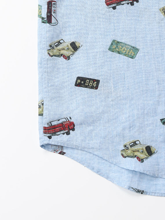 フレンチリネンシャンブレー ピックアップトラック プリントシャツ