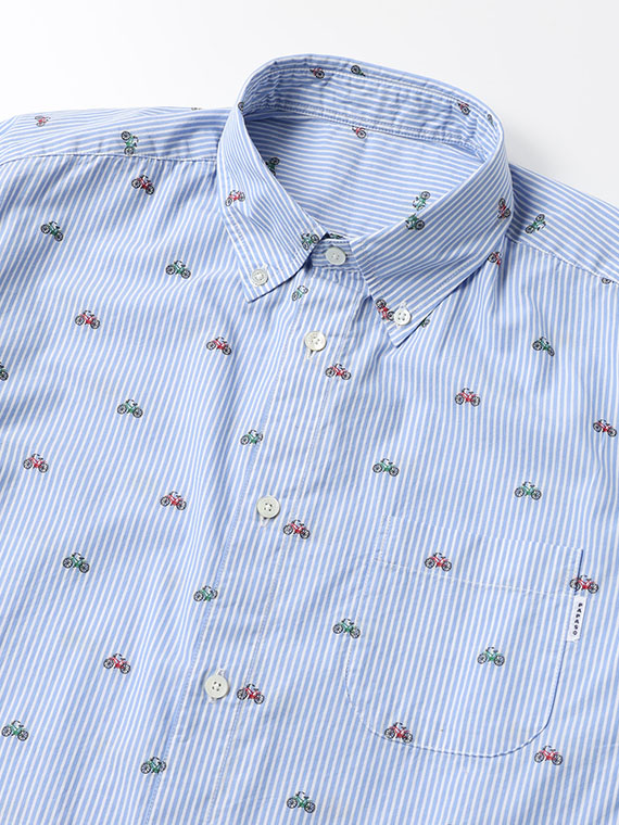 コットンポプリン カットジャガード 自転車柄 シャツ