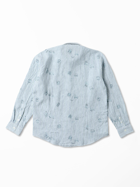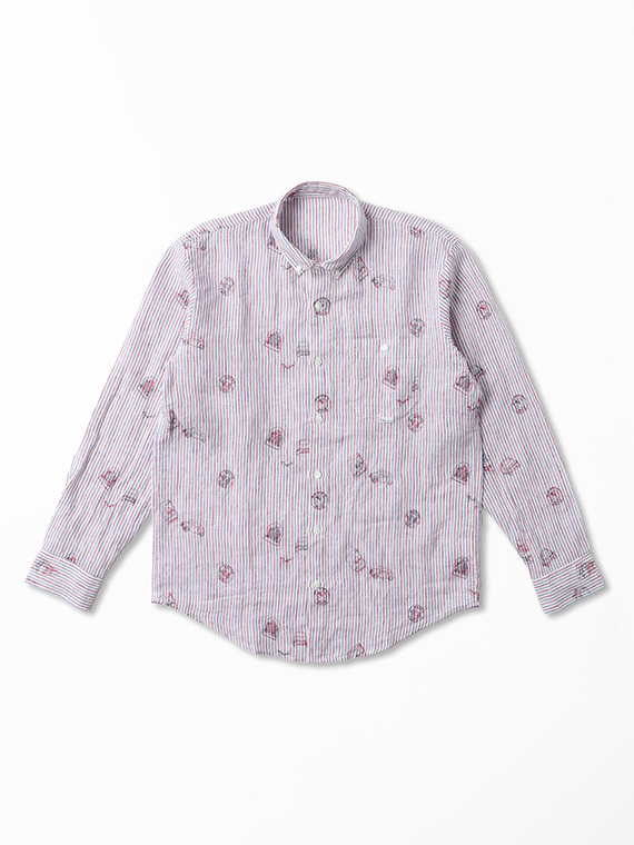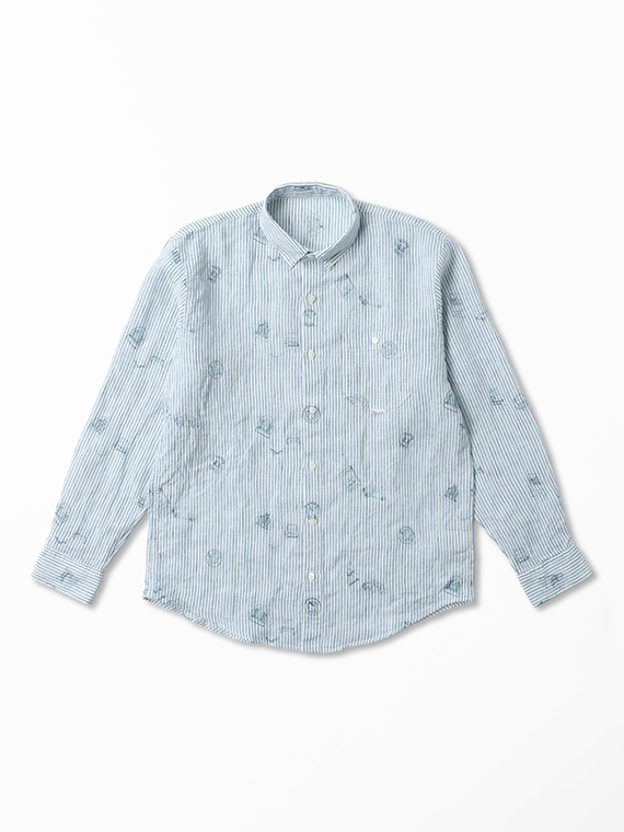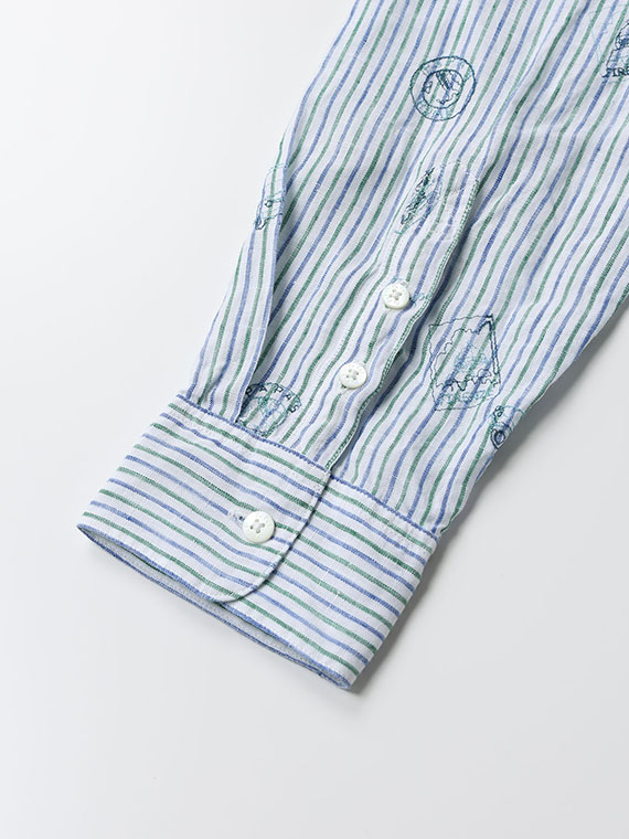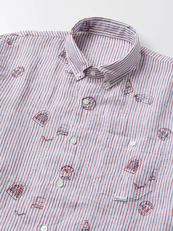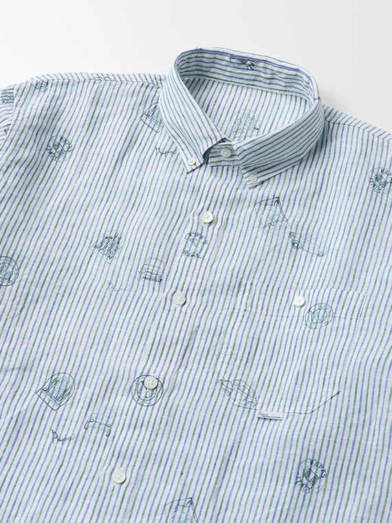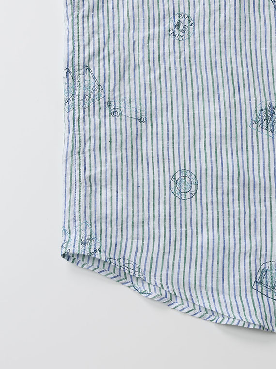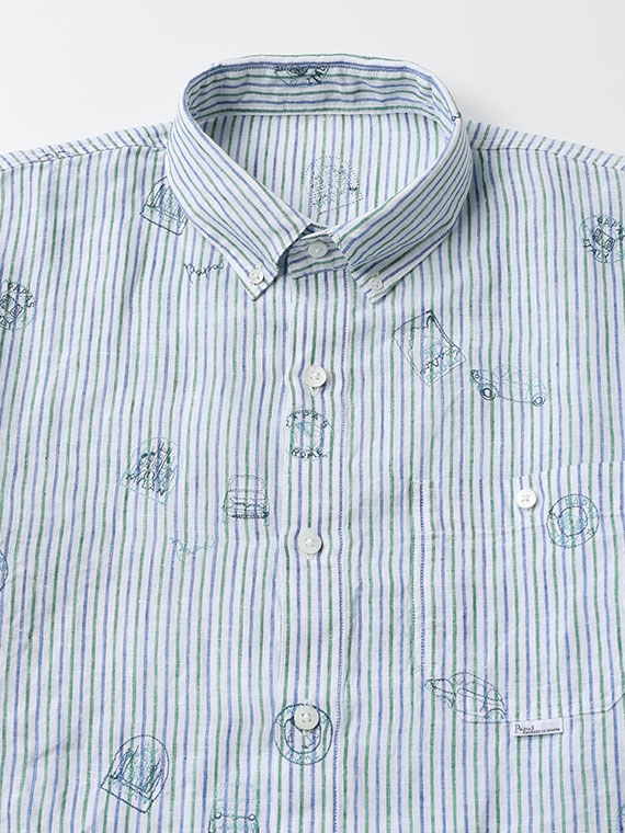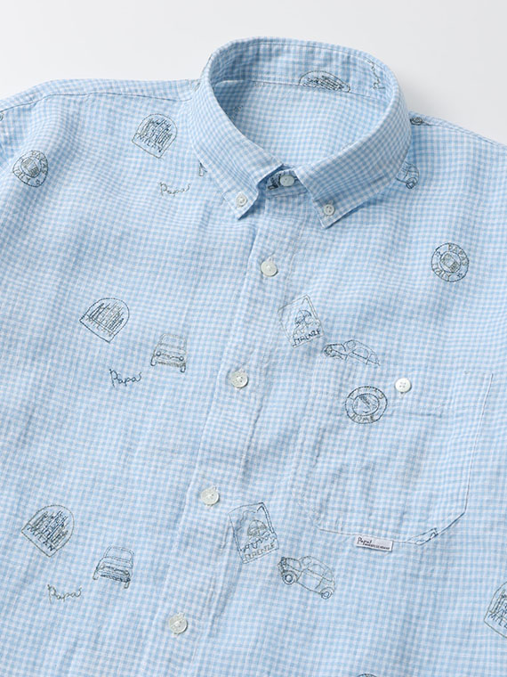 生地にはストライプやチェックをベースに、車やポスターのモチーフ刺繍を散りばめ、カジュアルながらも上品な印象に仕上げました。ボタンダウンカラーを採用し、きちんと感も備えています。一枚でさらりと着るのはもちろん、軽い羽織りやジャケットのインナーとしても活躍します。カラーごとに異なる表情を楽しめるのも魅力です。