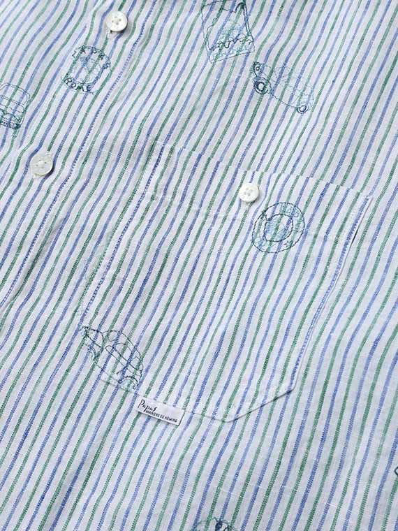 リネン ストライプ&チェック 車&ポスター 刺繍シャツ