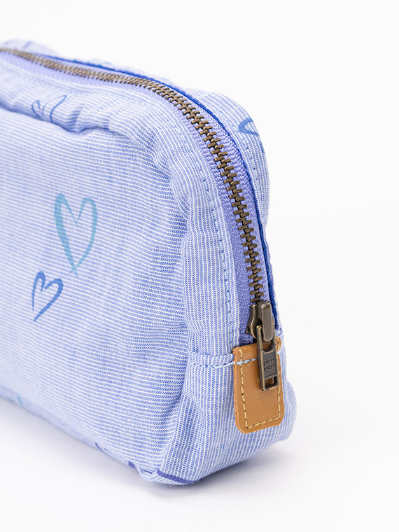 ランダムに配置したハート柄が、動きのある表情と遊び心をプラスします。ノンノンでは少し珍しいアイテムです。