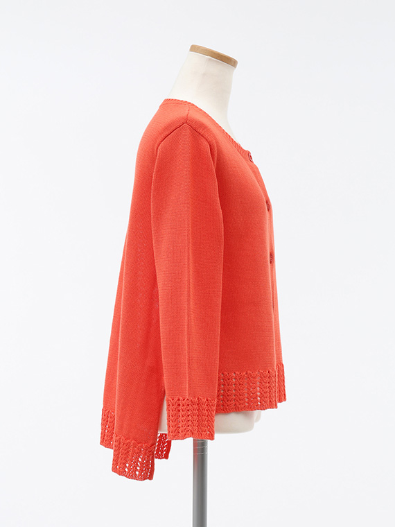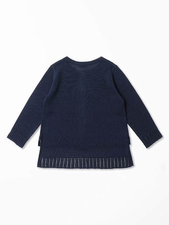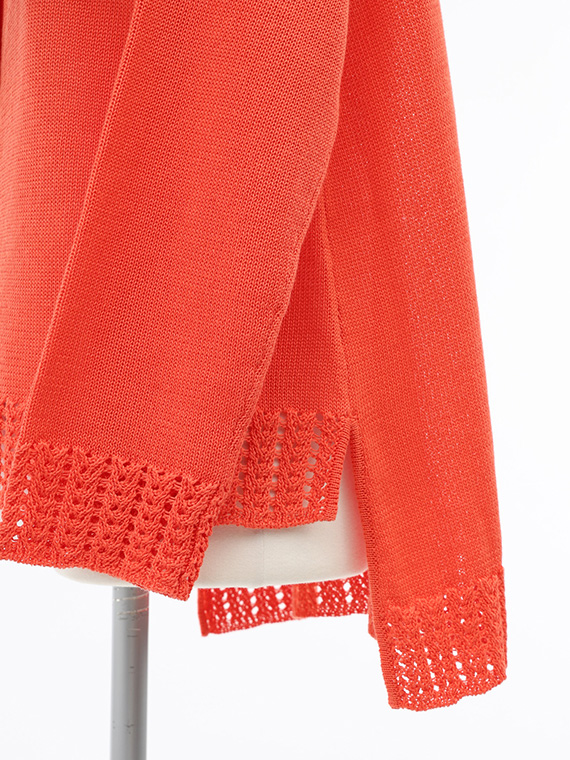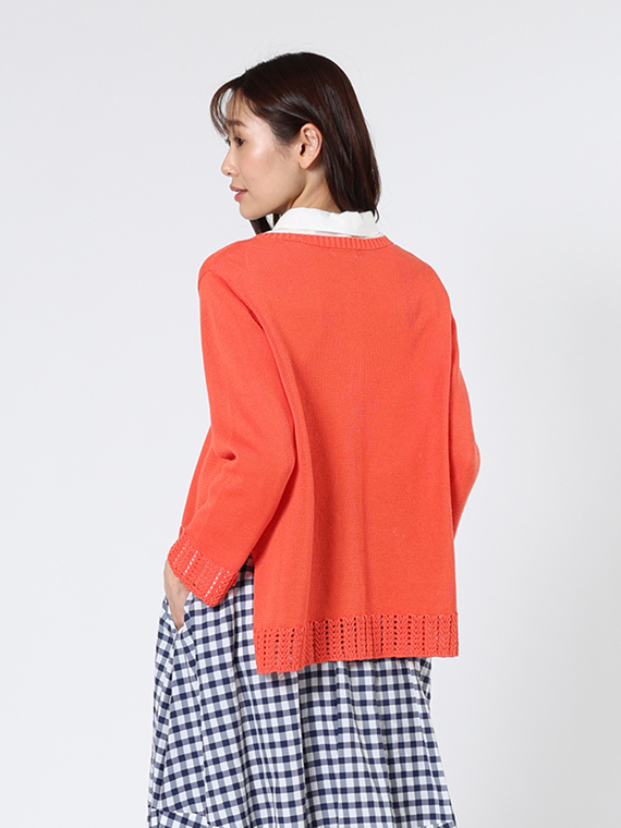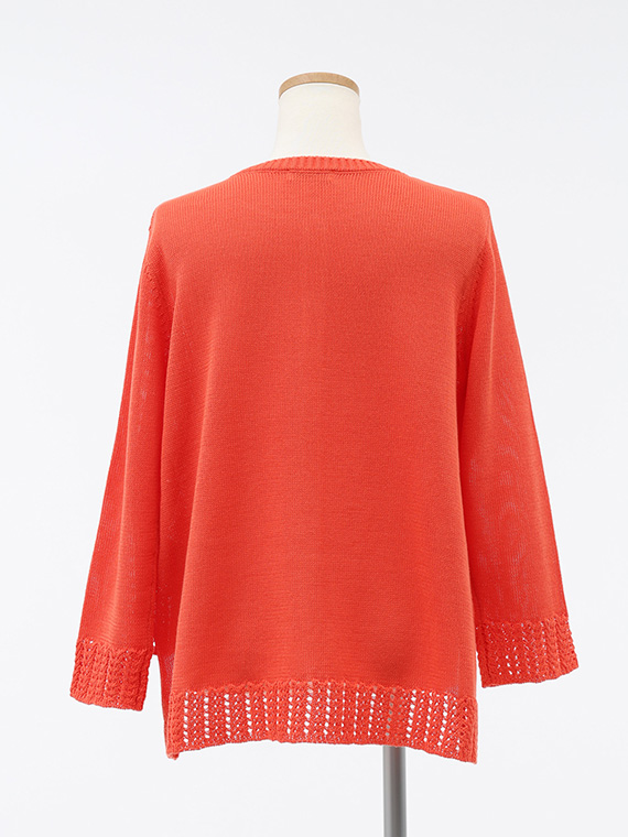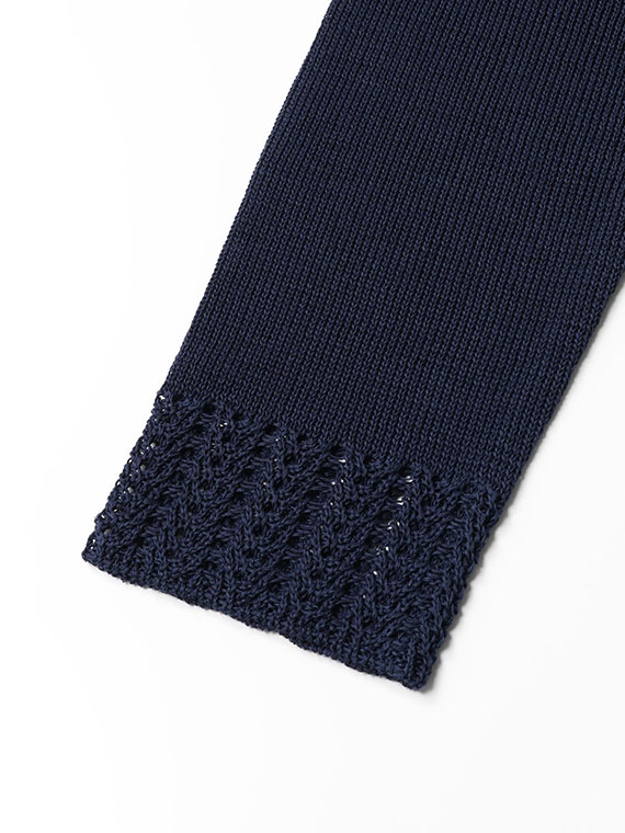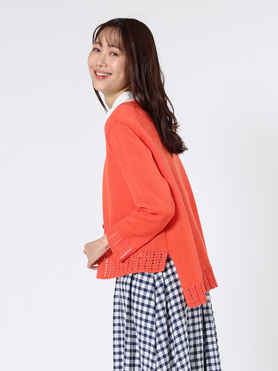 また、裾と袖口に施された繊細な「透かし編み」が、まるでアンティークのレースのような気品を添えてくれます。