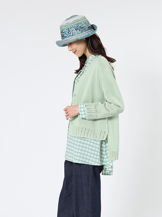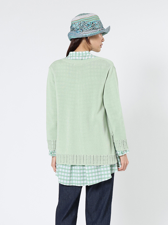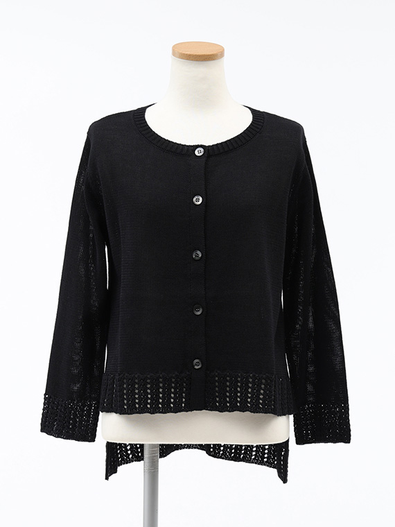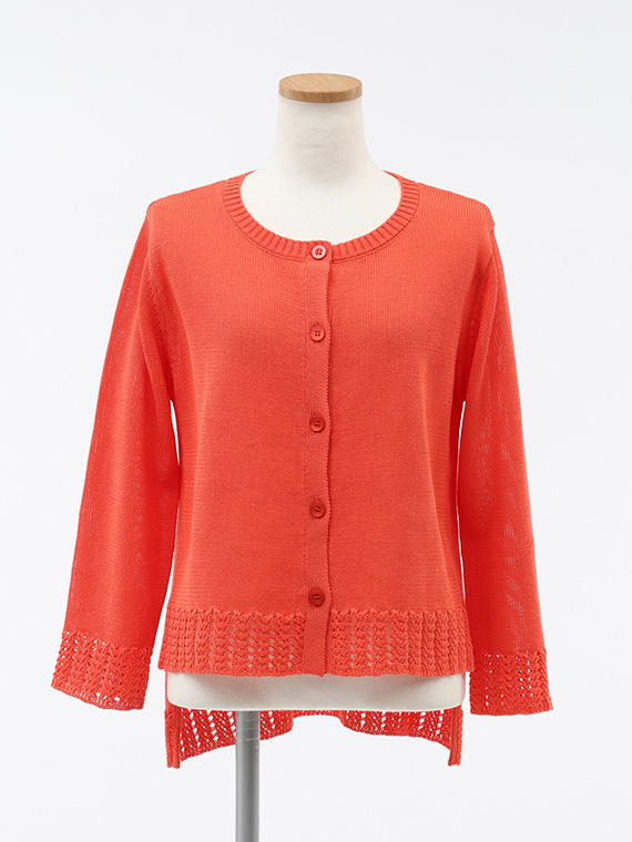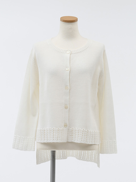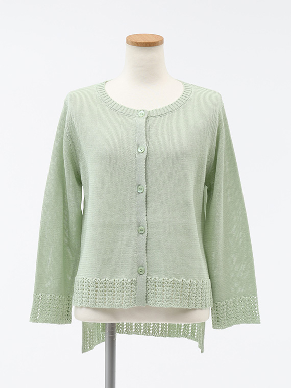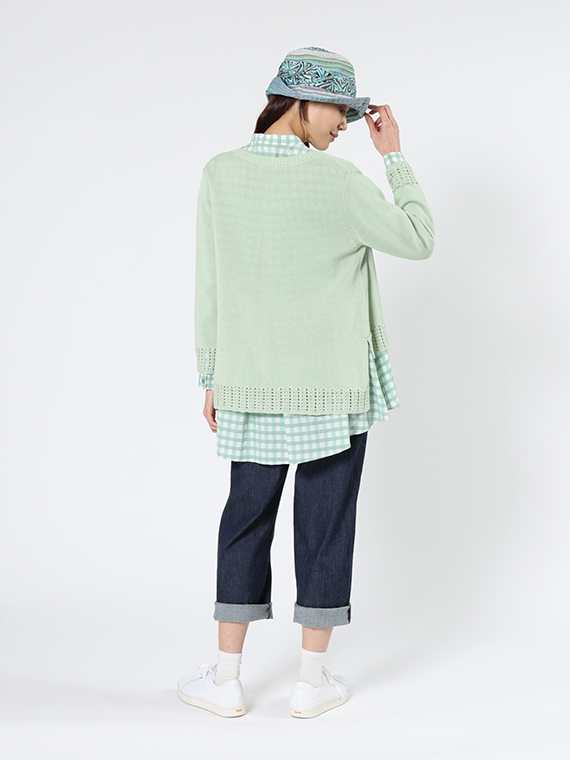 また、裾と袖口に施された繊細な「透かし編み」が、まるでアンティークのレースのような気品を添えてくれます。