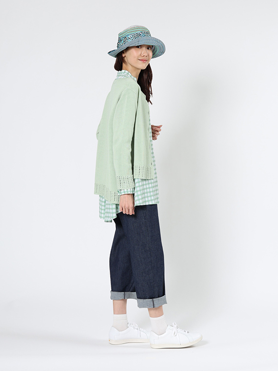 サイドのスリットが抜け感を作ってくれるので、ボリュームのあるボトムスと合わせても重たくなりません。