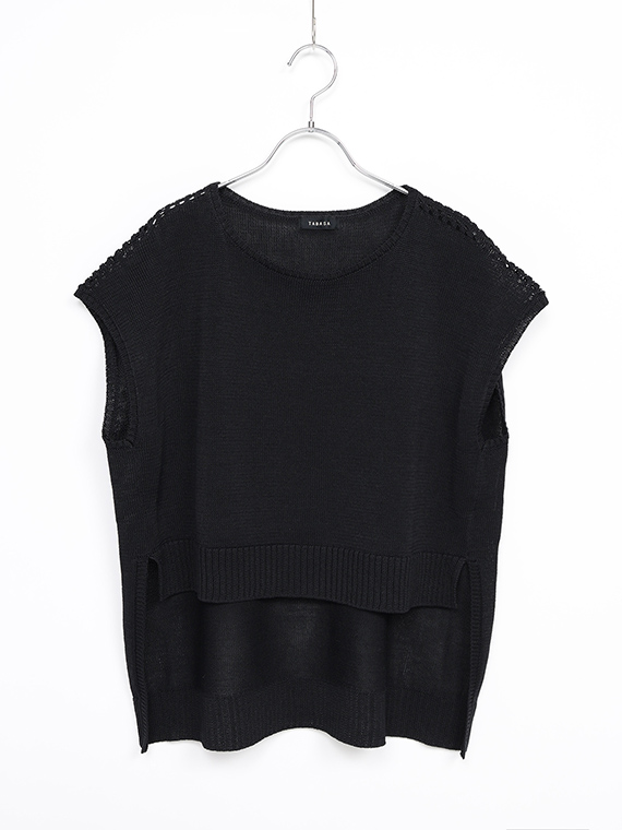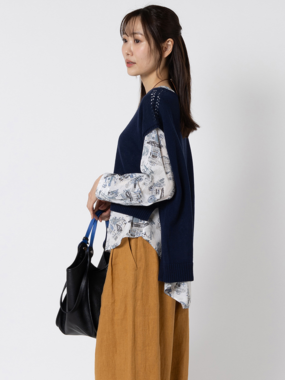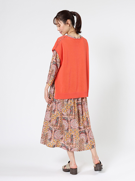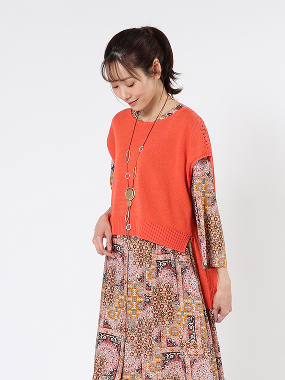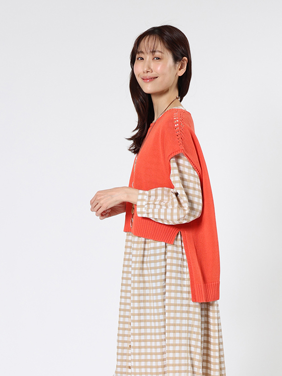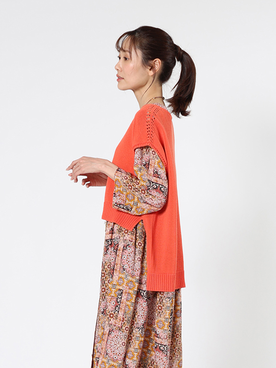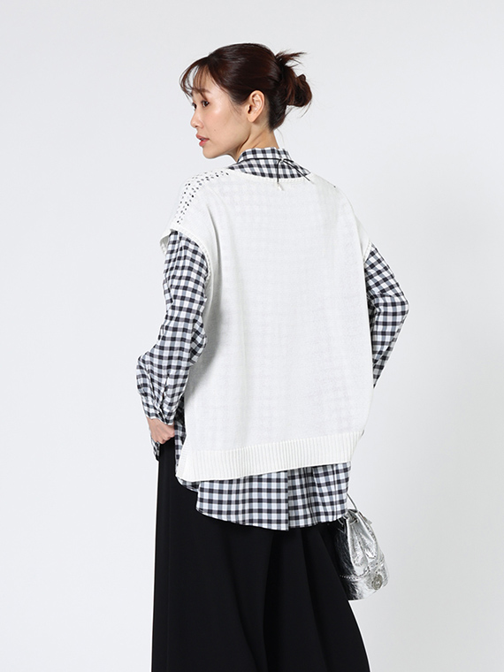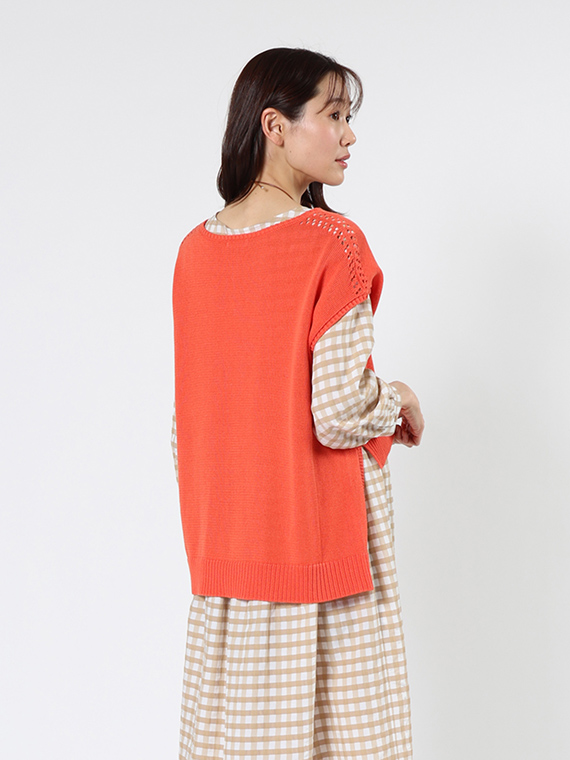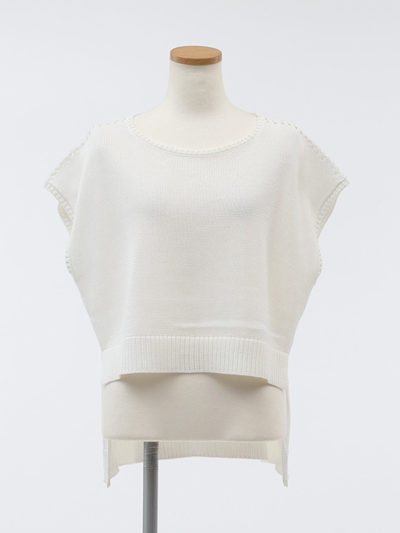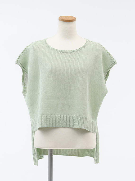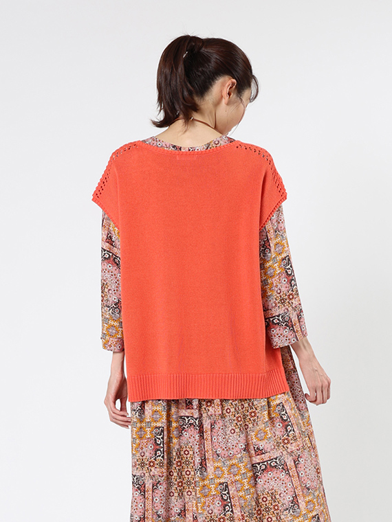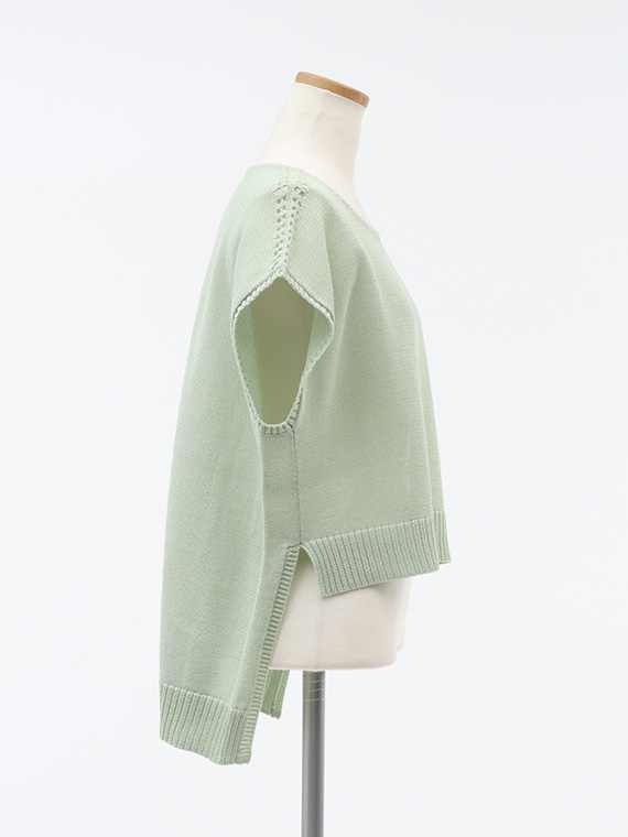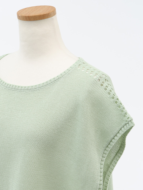 肩線に沿って施された繊細な透かし編みが、さらに遊び心を満たします。