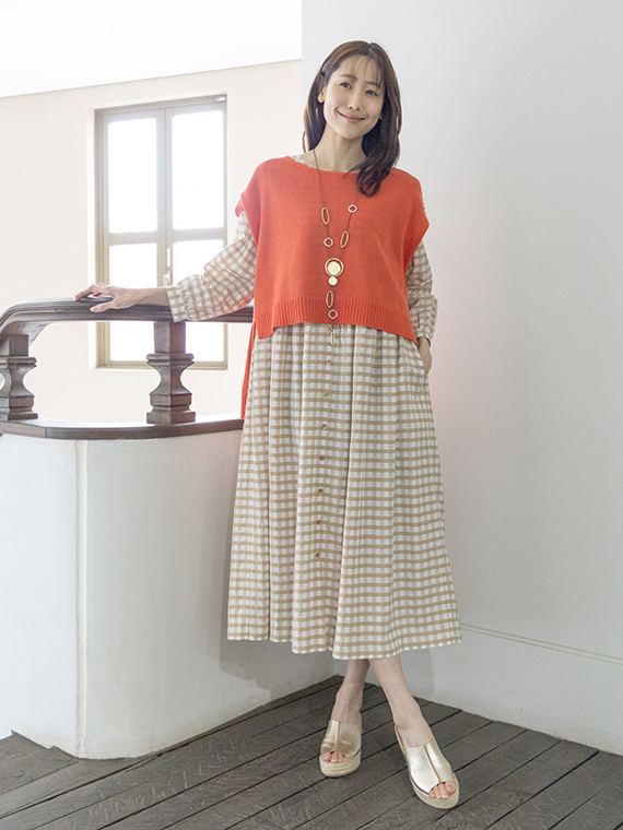 シンプルなワンピースやブラウスにプラスするだけで旬な着こなしになり、素敵です。