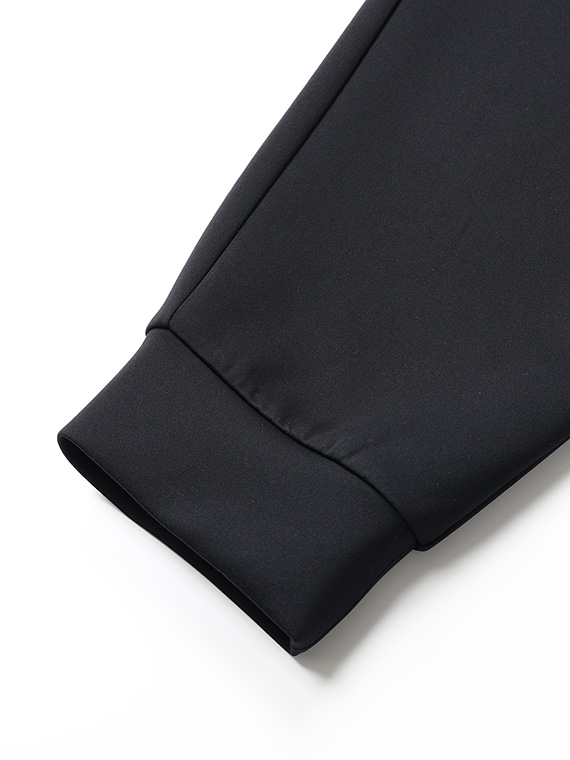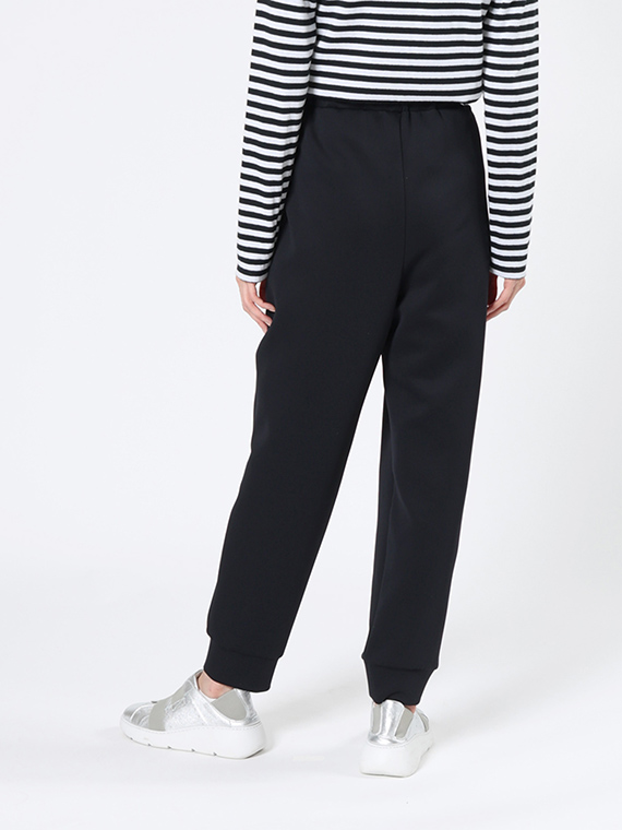 裾には共生地のカフスをあしらい、足首をキュッと引き締めるデザインにしました。