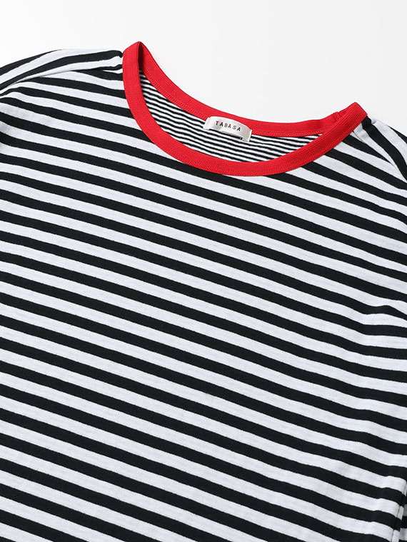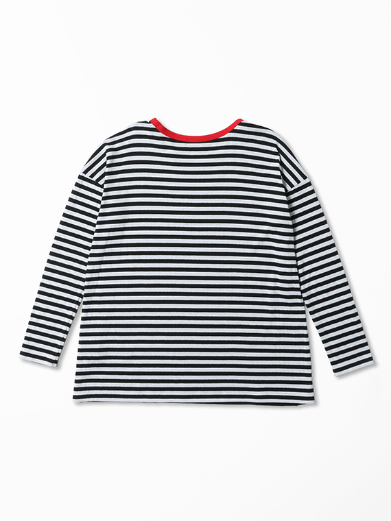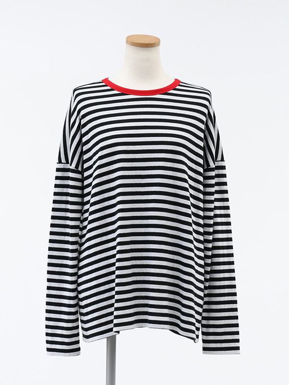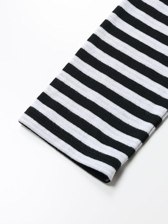 袖を少しラフにまくって、裏側の異なるボーダー柄をチラリと見せる、そんな遊び心のある着こなしをぜひお楽しみください。