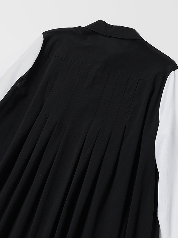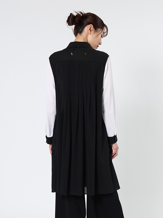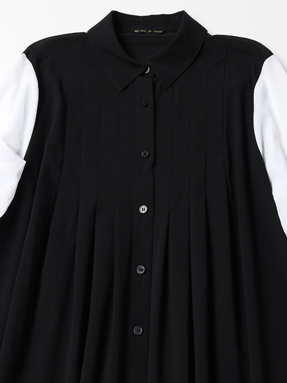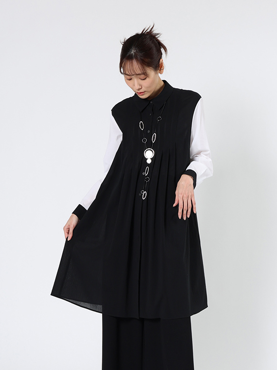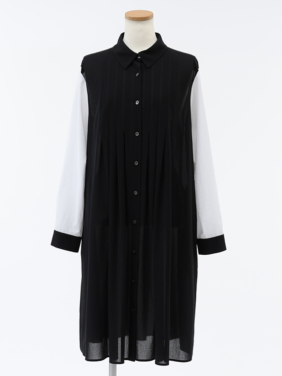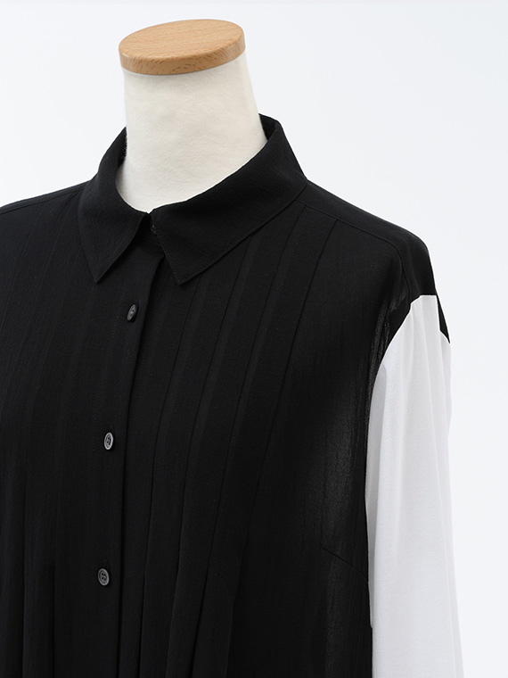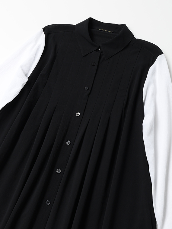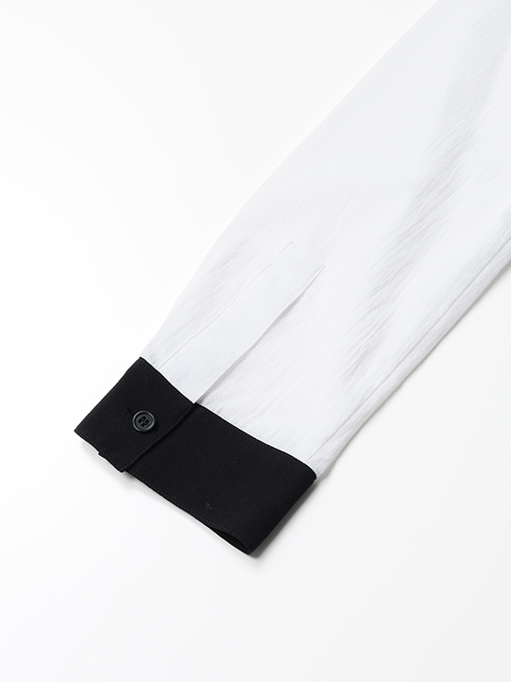 身頃は潔い「クロ」一色ですが、袖にだけあえて「シロ」を配置したコントラストが、都会的でモダンな印象を際立たせてくれます。