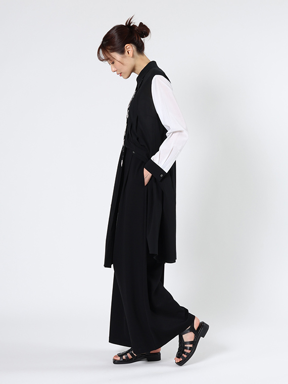 一番の魅力は、前後ともにヨーク下へ施された左右4本ずつのタック。この細やかなあしらいが、お洋服に奥行きのある表情と、どこか懐かしく温かみのあるクラフト感を添えています。