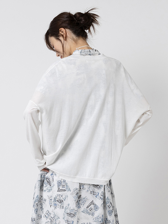 お召しいただくと、大きくドロップさせたショルダーから、身体を優しく包み込むような、ゆるっとした落ち感があり、大人の余裕を感じさせてくれます。